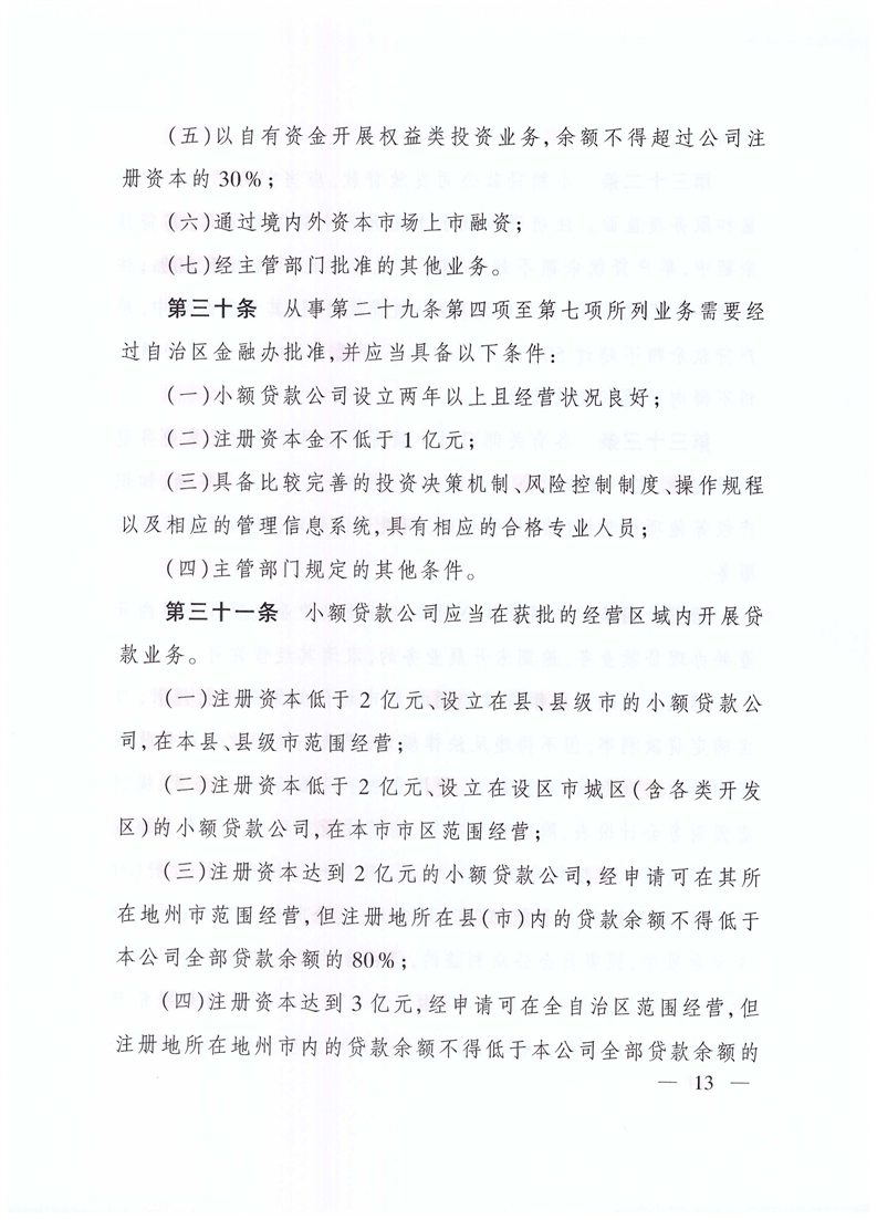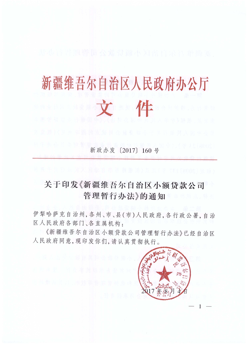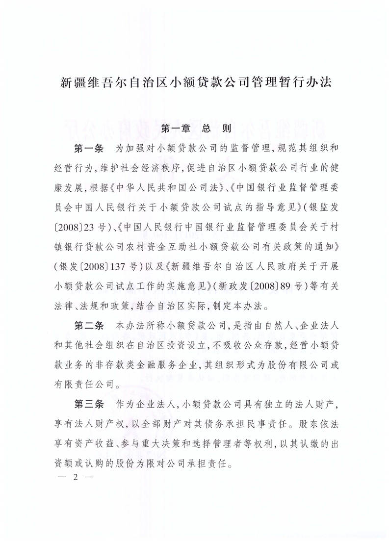 关于印发《新疆维吾尔自治区小额贷款公司管理暂行办法》的通知.