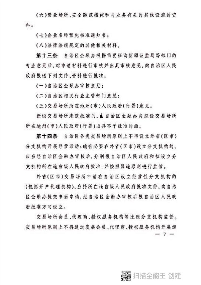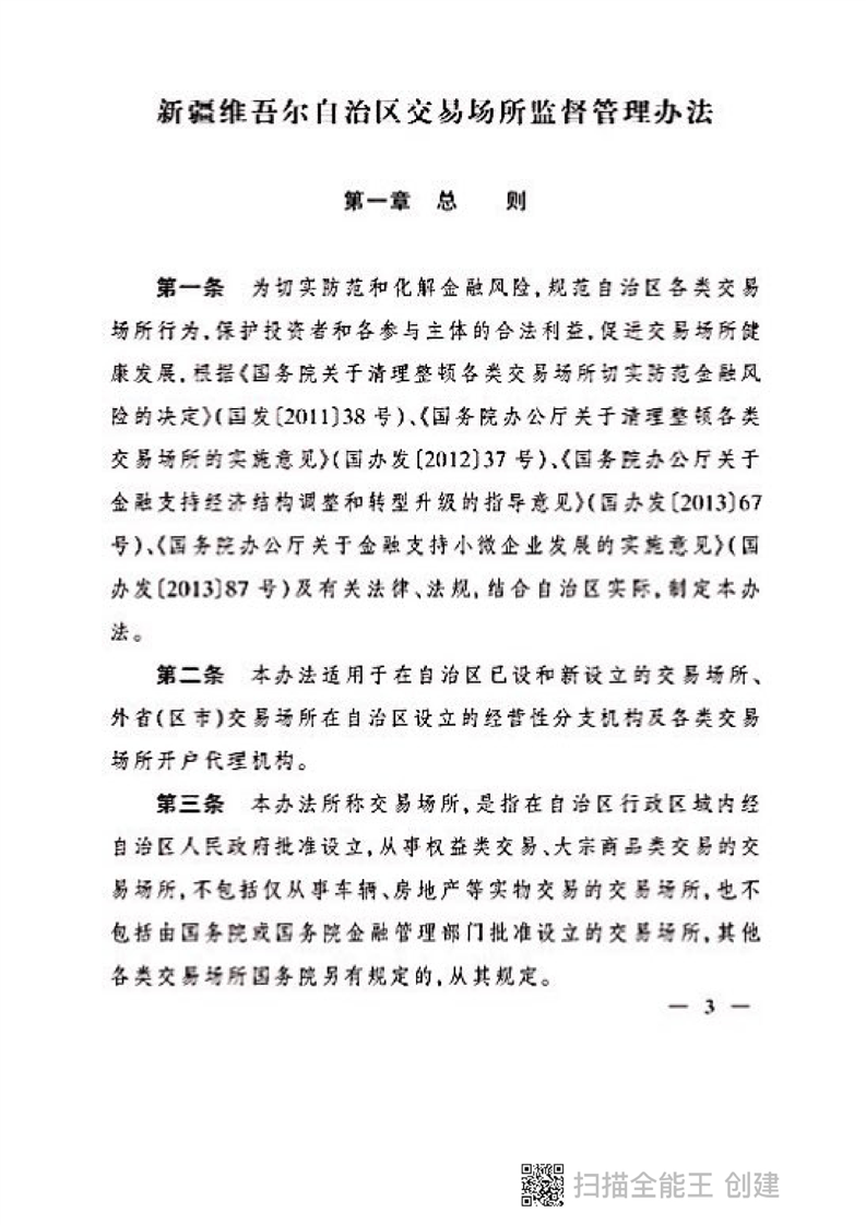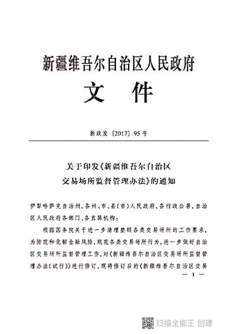 关于印发《新疆维吾尔自治区交易场所监督管理办法》的通知
