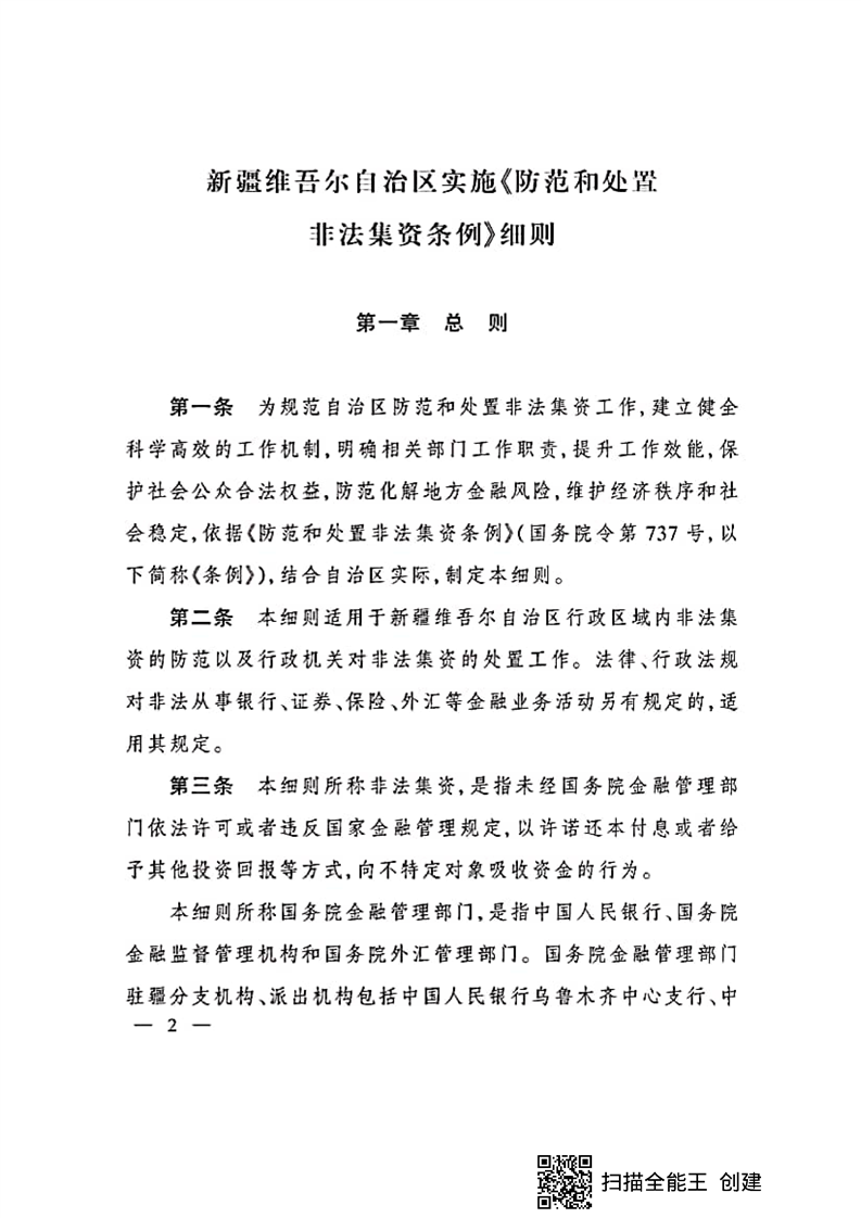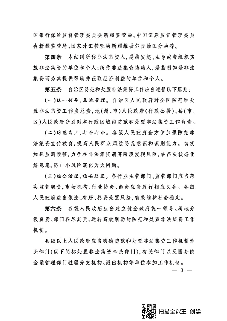 新政办发[2021]63号关于印发《新疆维吾尔自治区实施<防范和处置非法集资条例>细则》的通知