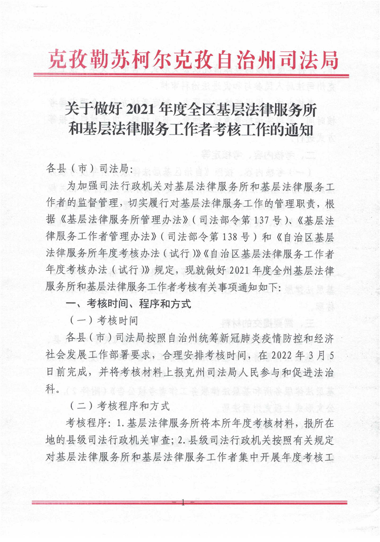 关于做好2021年度全区基层法律服务所和基层法律服务工作者考核工作的通知