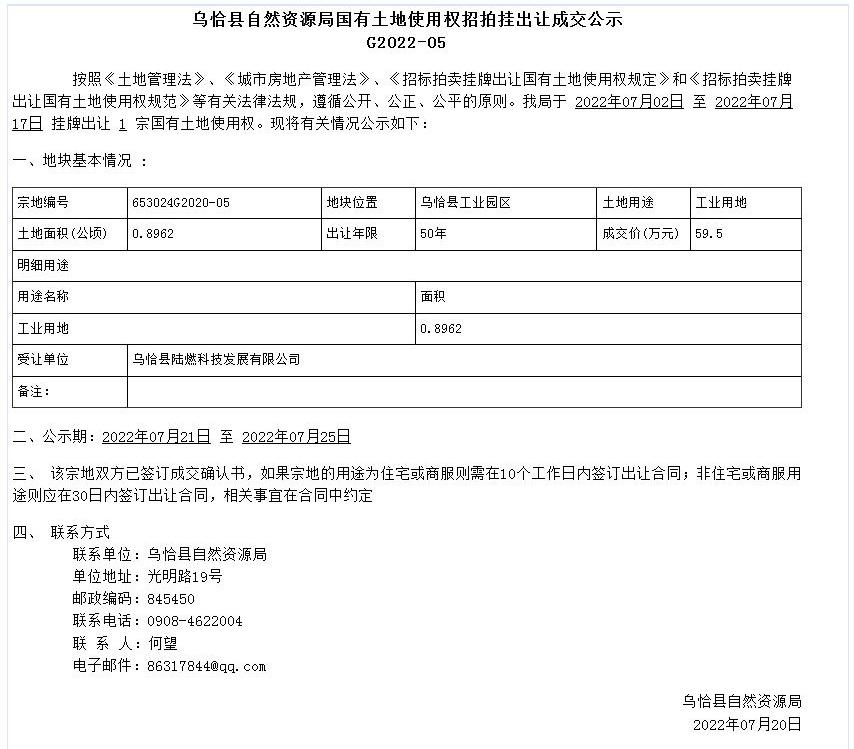 乌恰县自然资源局国有土地使用权招拍挂出让成交公式