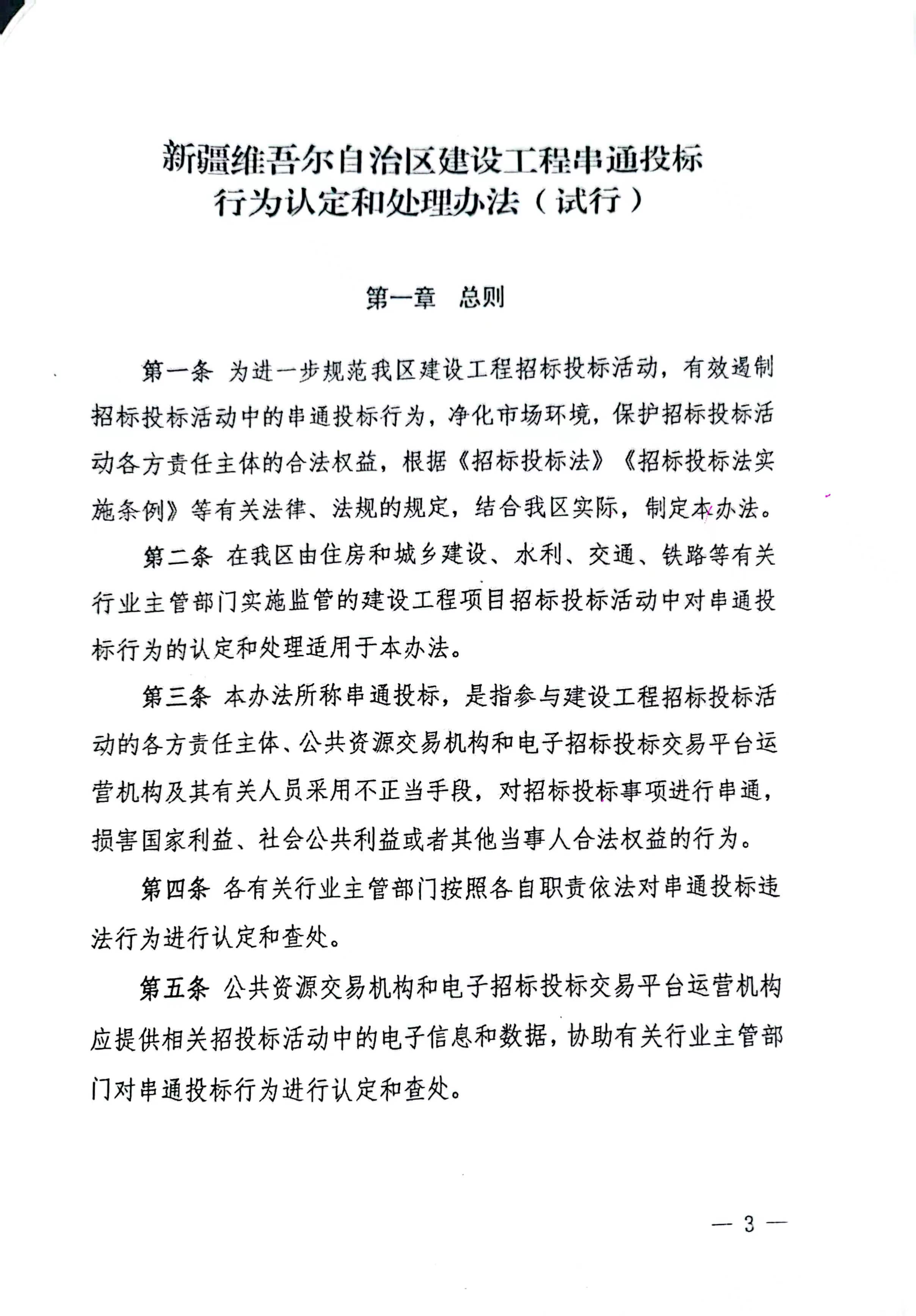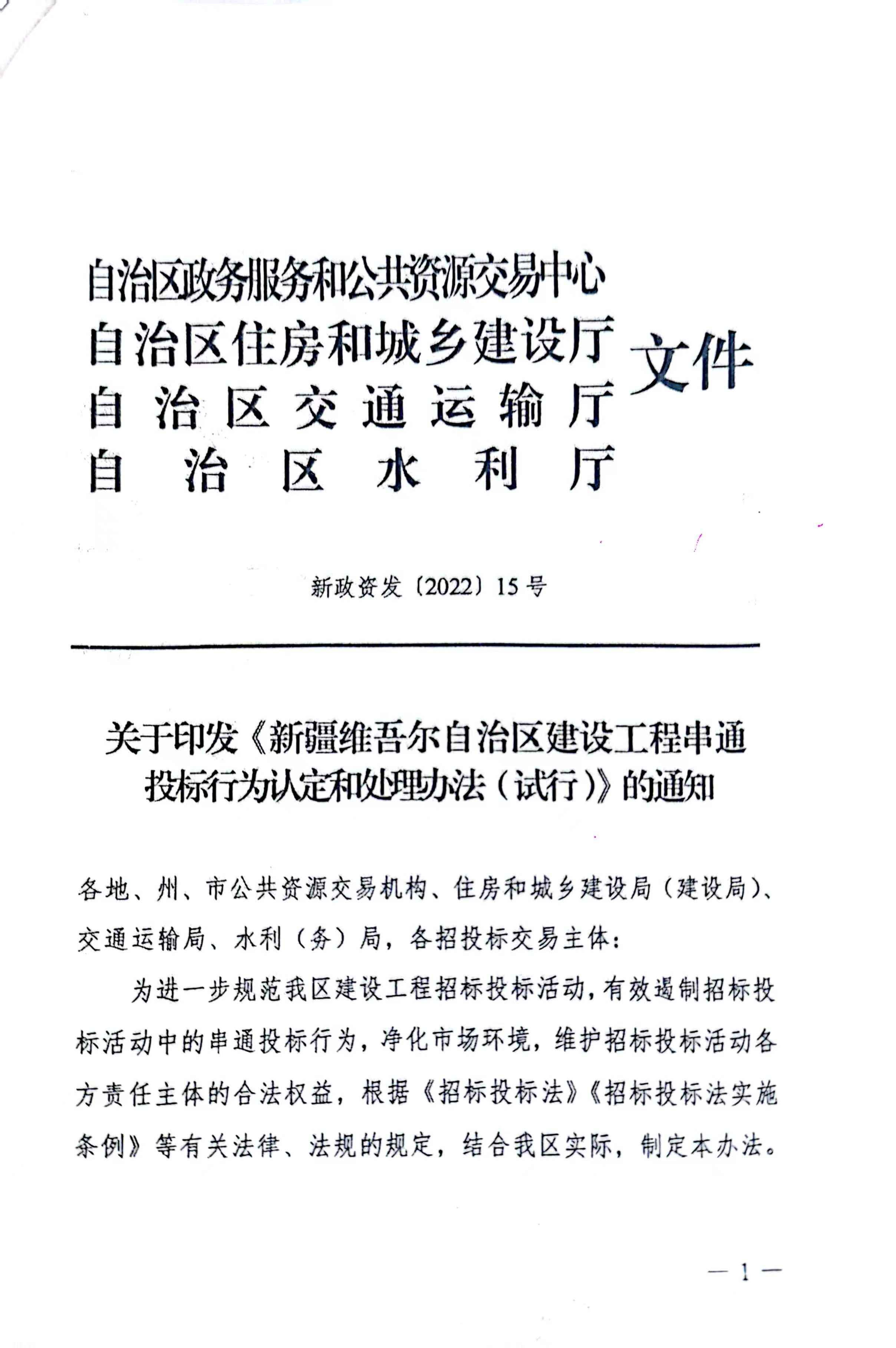 关于印发《新疆维吾尔自治区建设工程串通投标行为认定和处理办法(试行)》的通知
