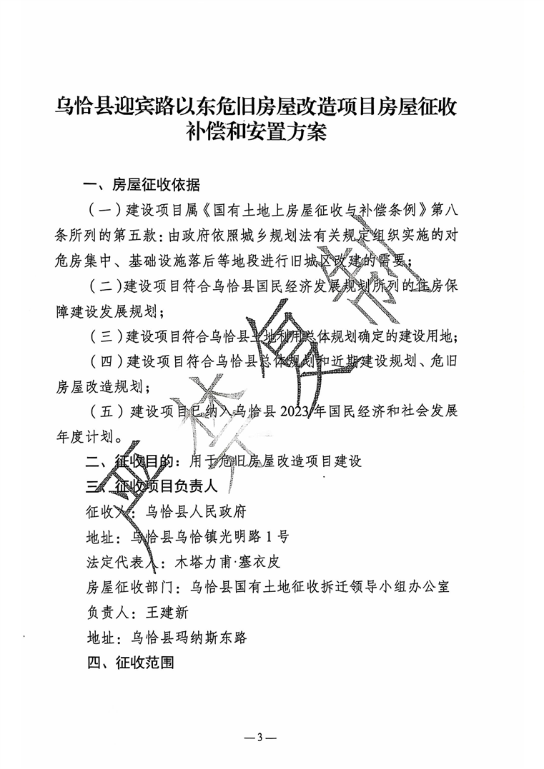 乌恰县迎宾路以东危旧房屋改造项目房屋征收补偿和安置方案