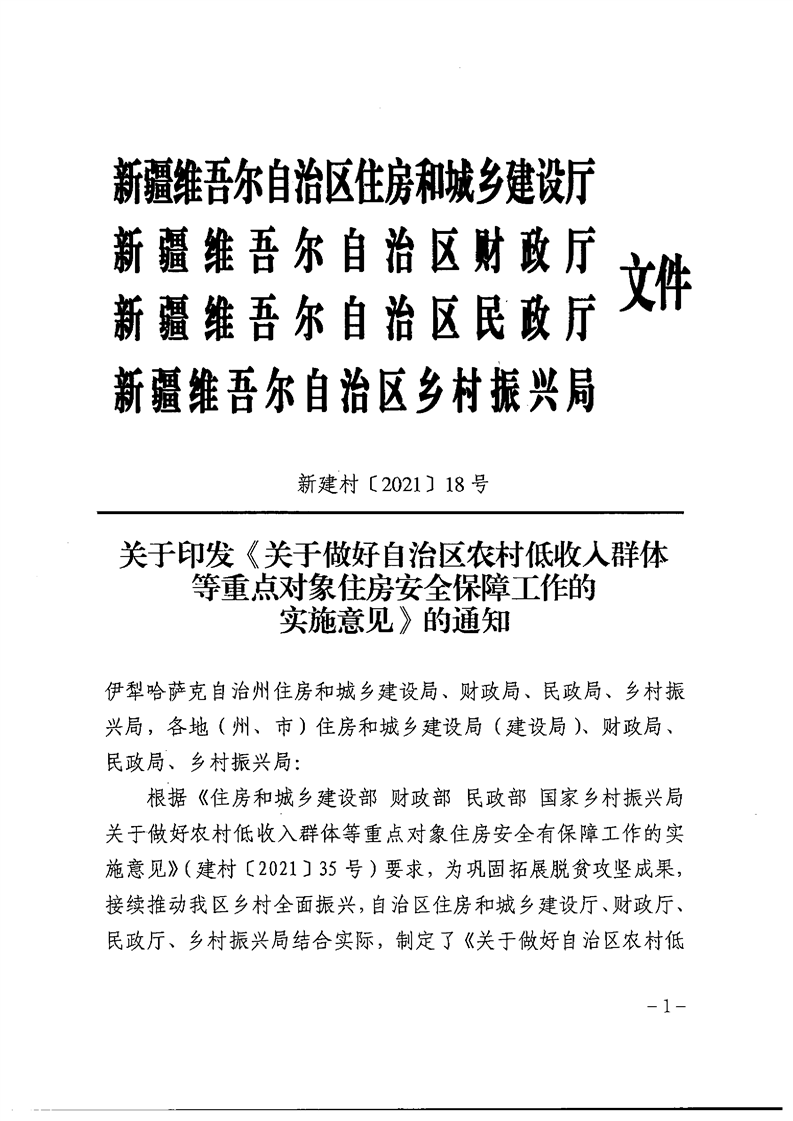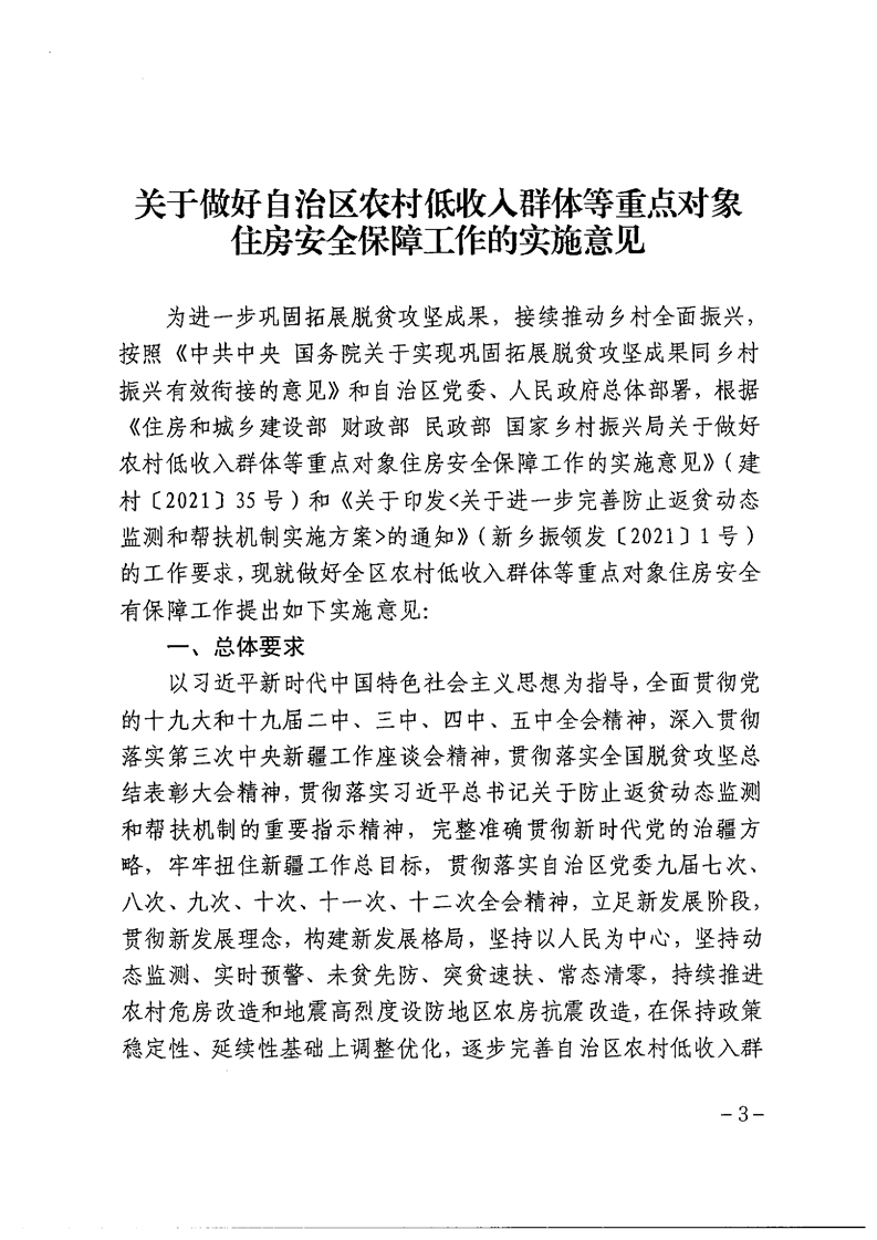 关于印发《关于做好自治区农村低收入人群体等重点对象住房安全保障工作的实施意见》的通知
