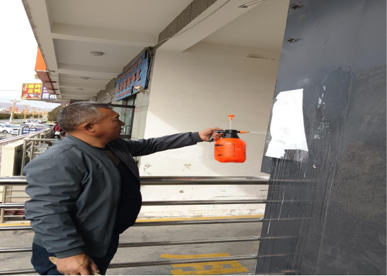 整治过程中执法人员手拿铲子、喷壶、抹布等工具,对主次干道和背街小巷墙面、门柱、立杆、门店玻璃上的各类违法小广告进行了彻底清理清洗,至目前,共清理乱涂乱画9余处,过期横幅15条、违规粘贴广告300余张,实现了辖区全覆盖、无遗漏。