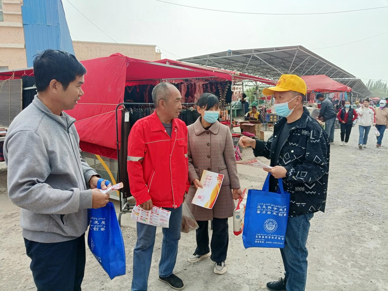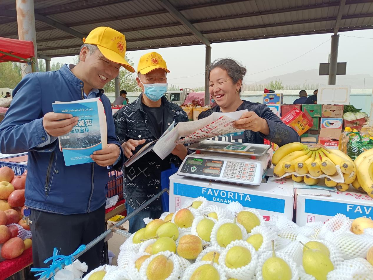 图为:城管大队干部向群众宣讲防灾减灾知识