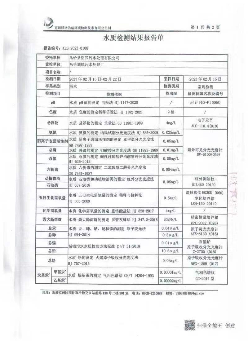 2023年3月污水检测报告