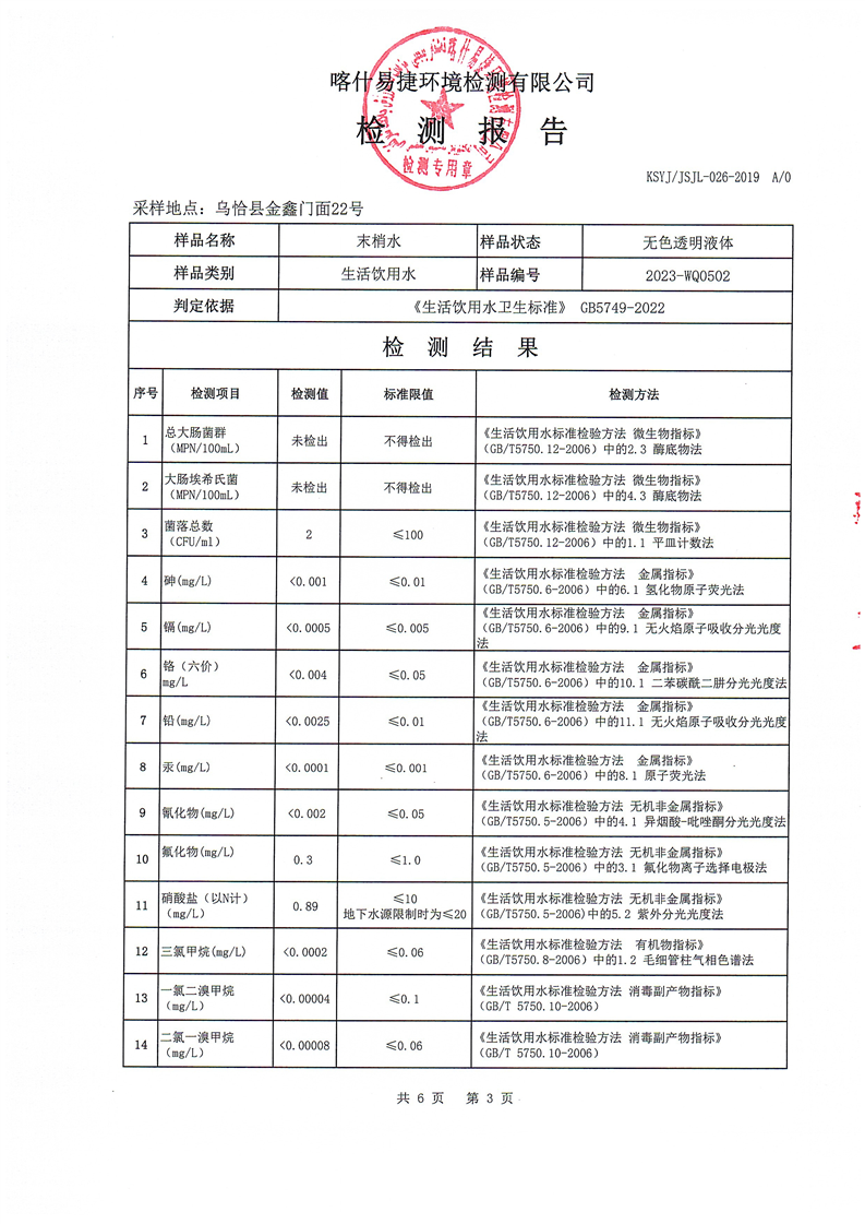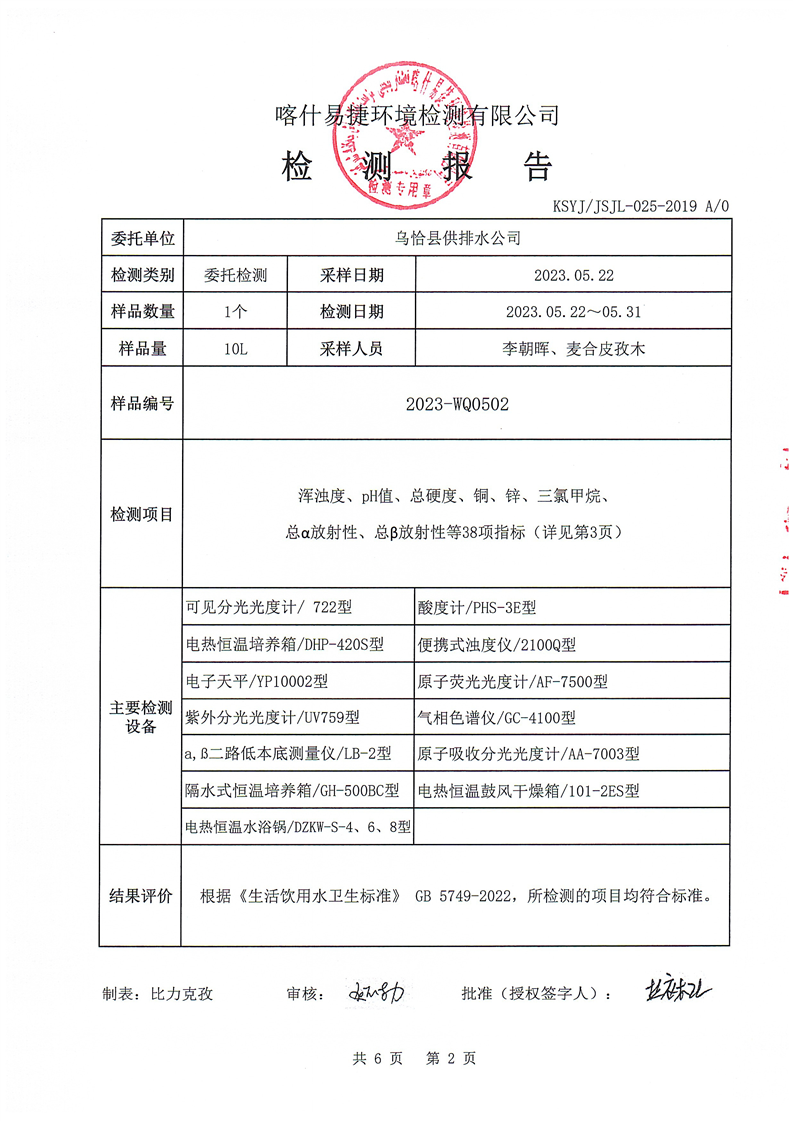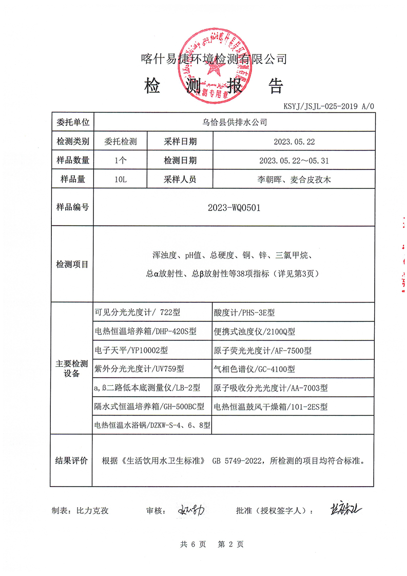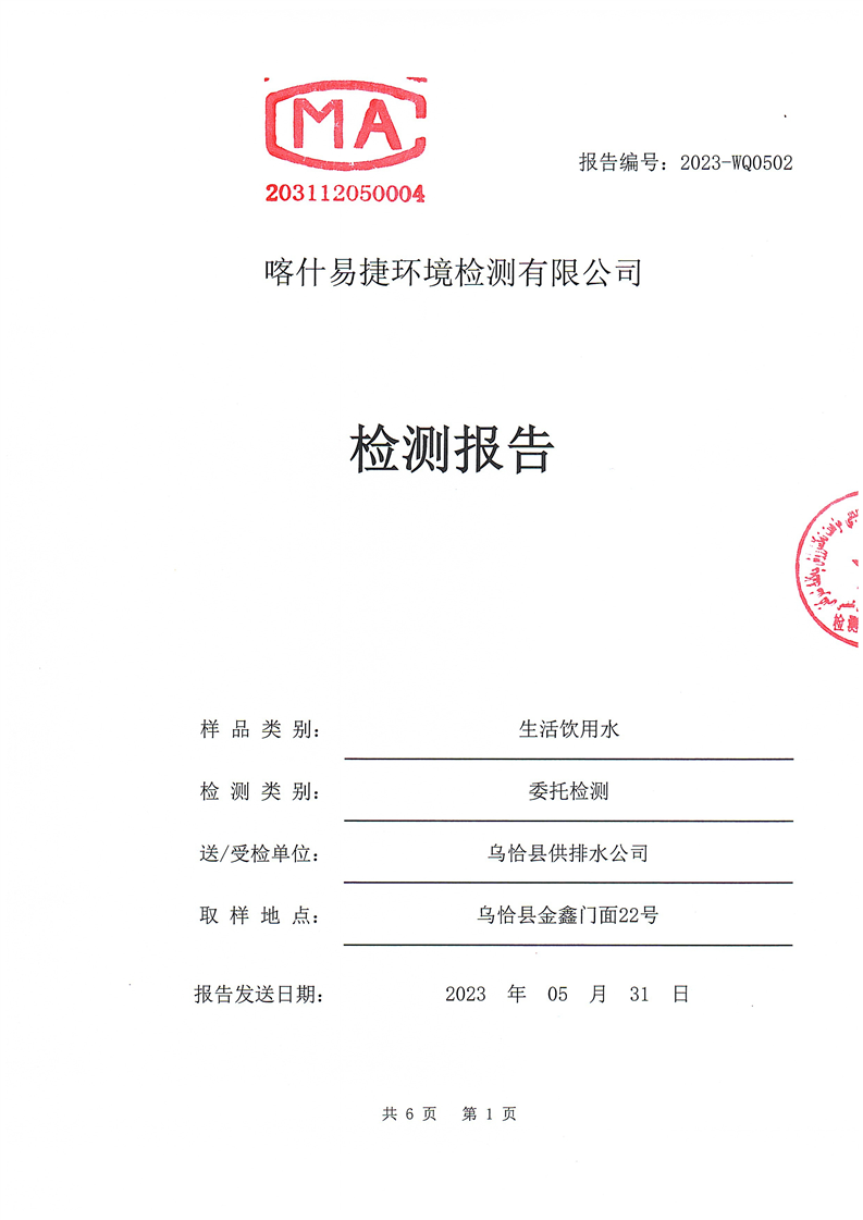 2023年5月水质检测报告