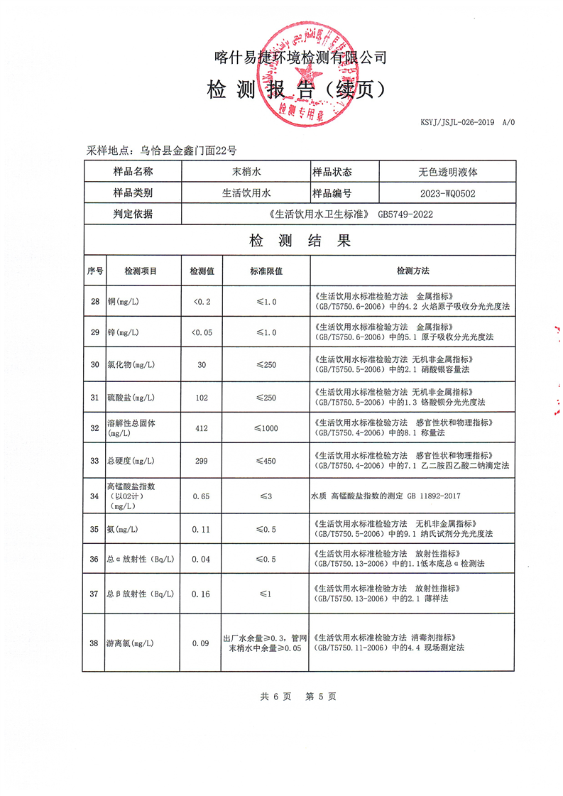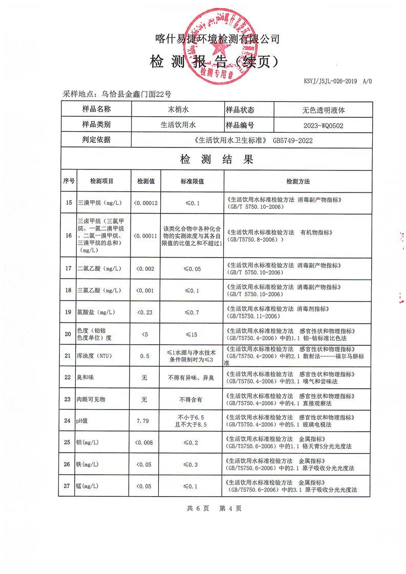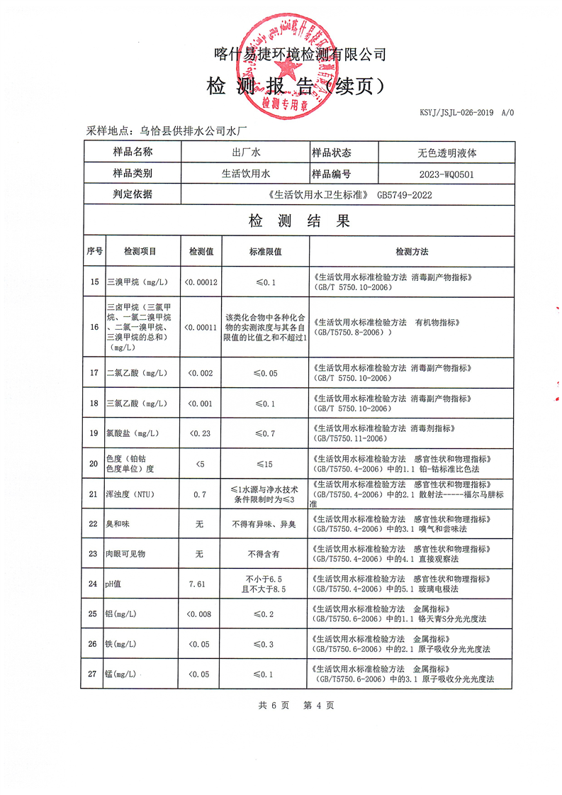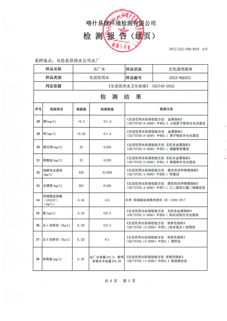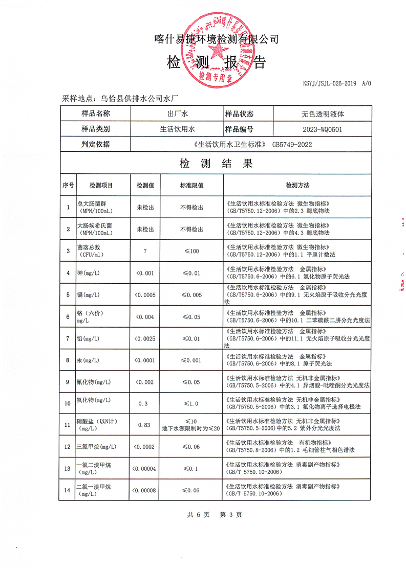 2023年5月水质检测报告