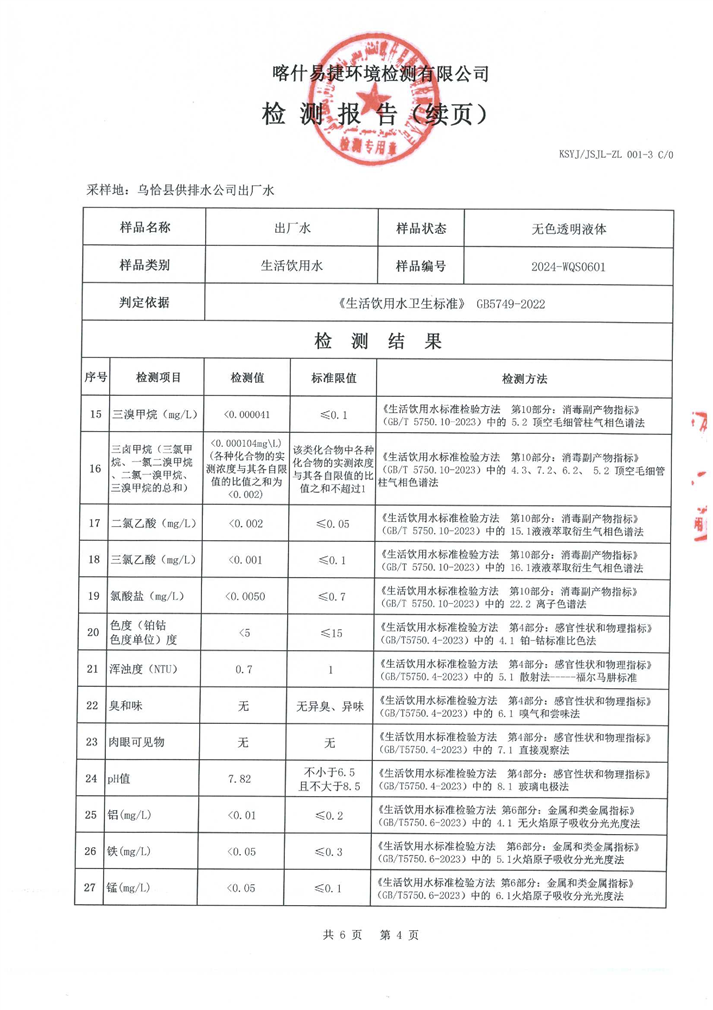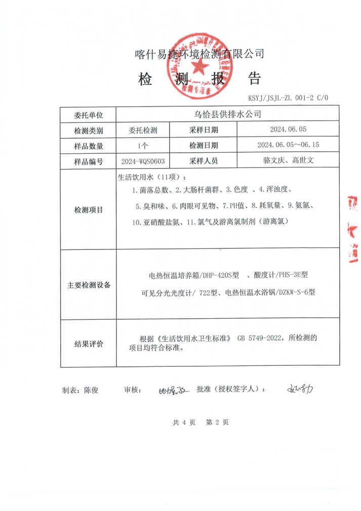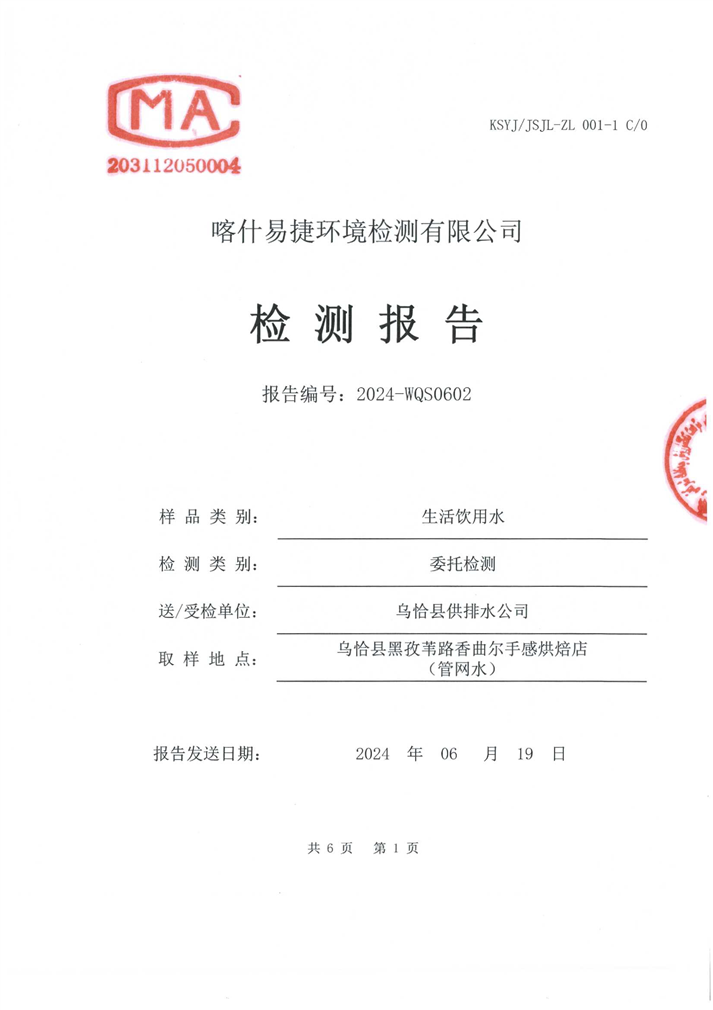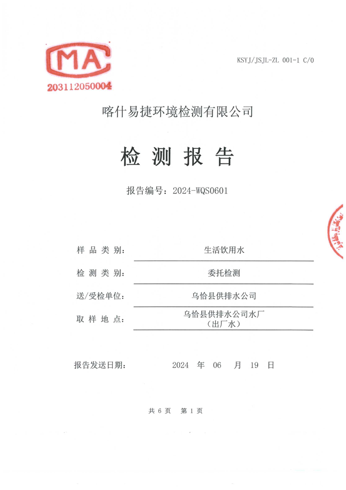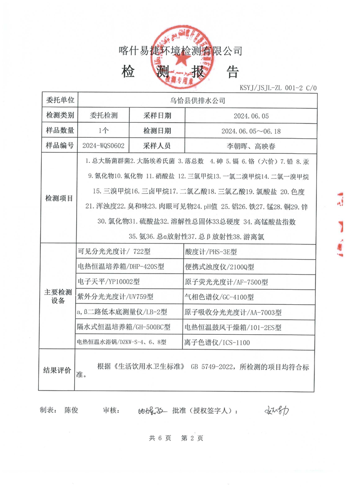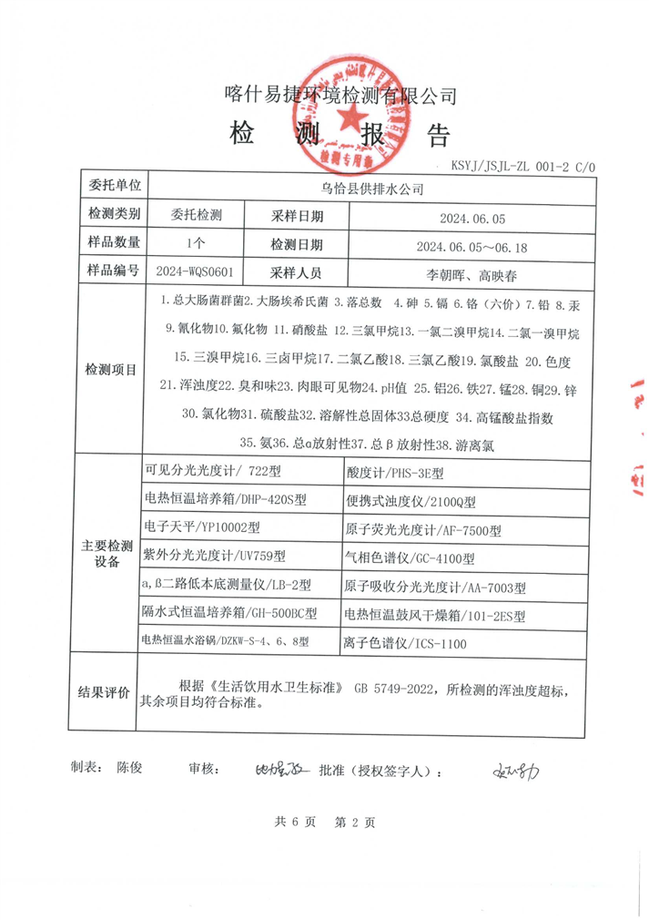 6月份水质检测报告