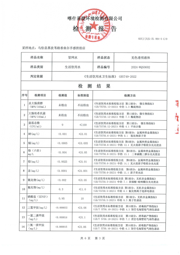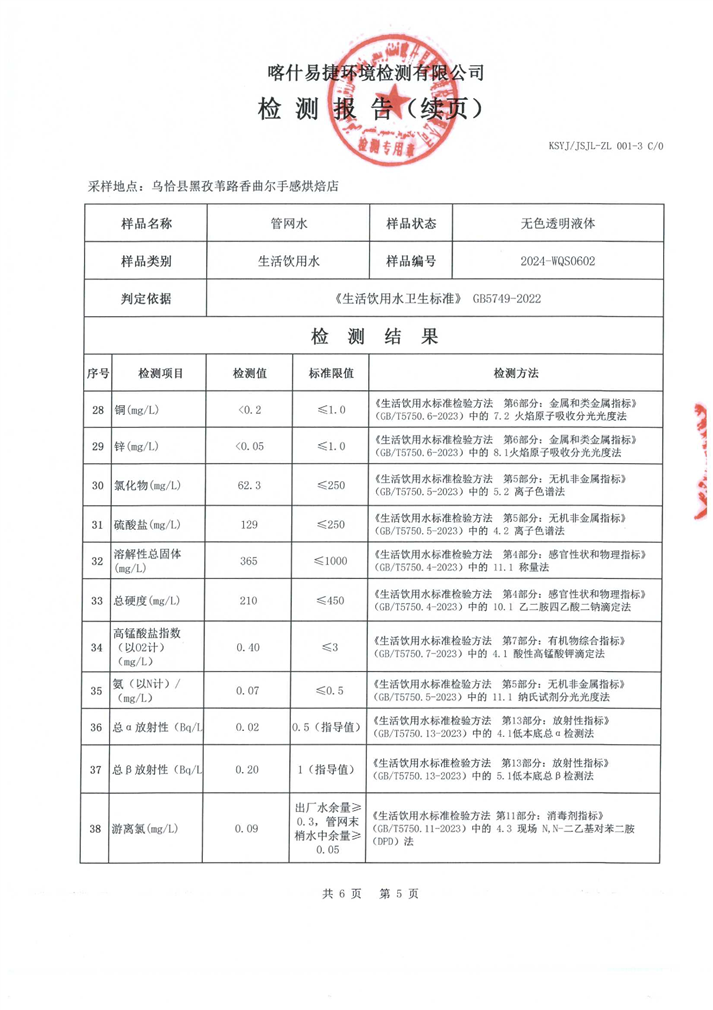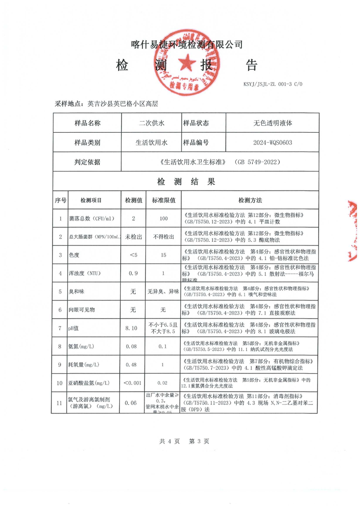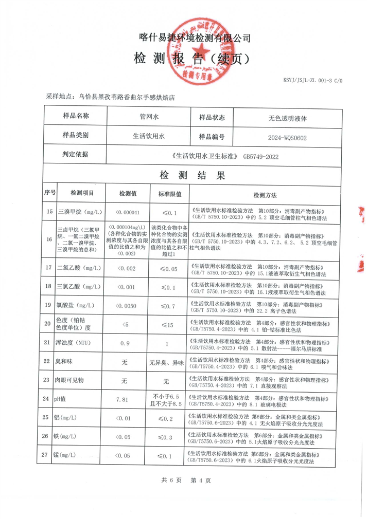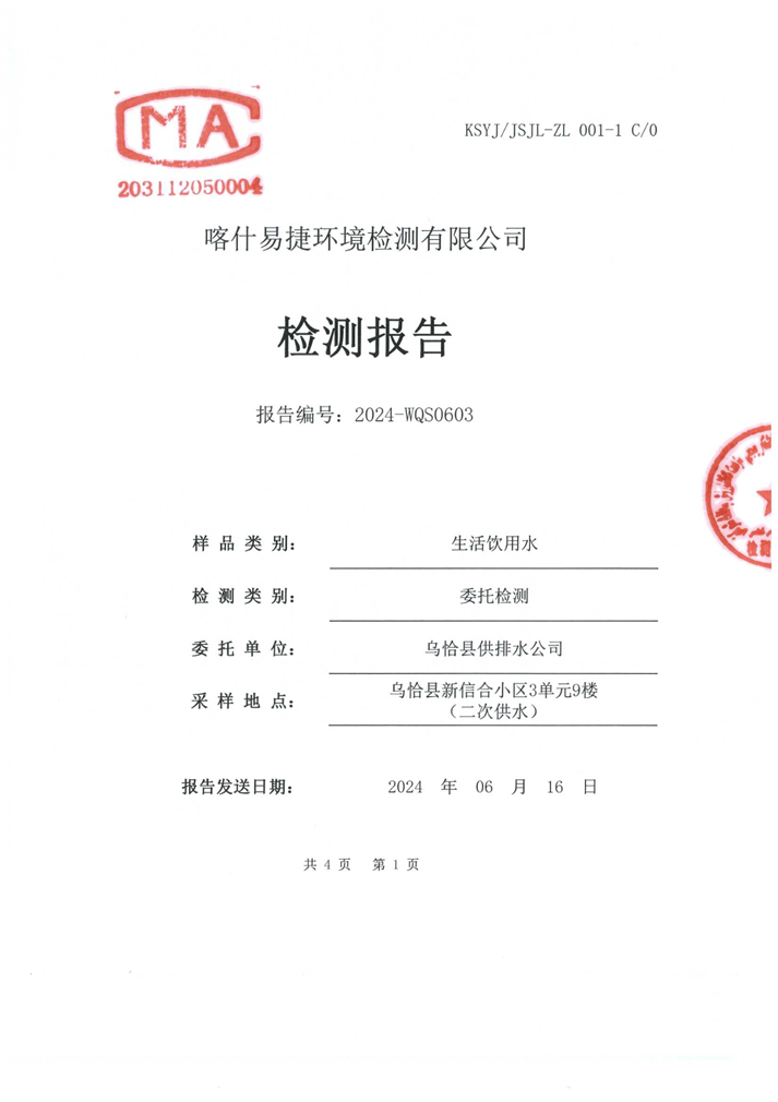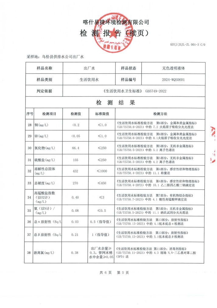 6月份水质检测报告