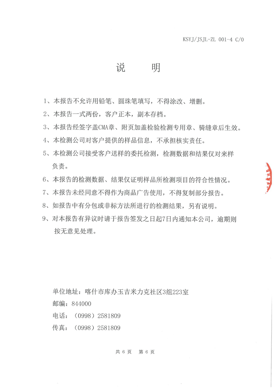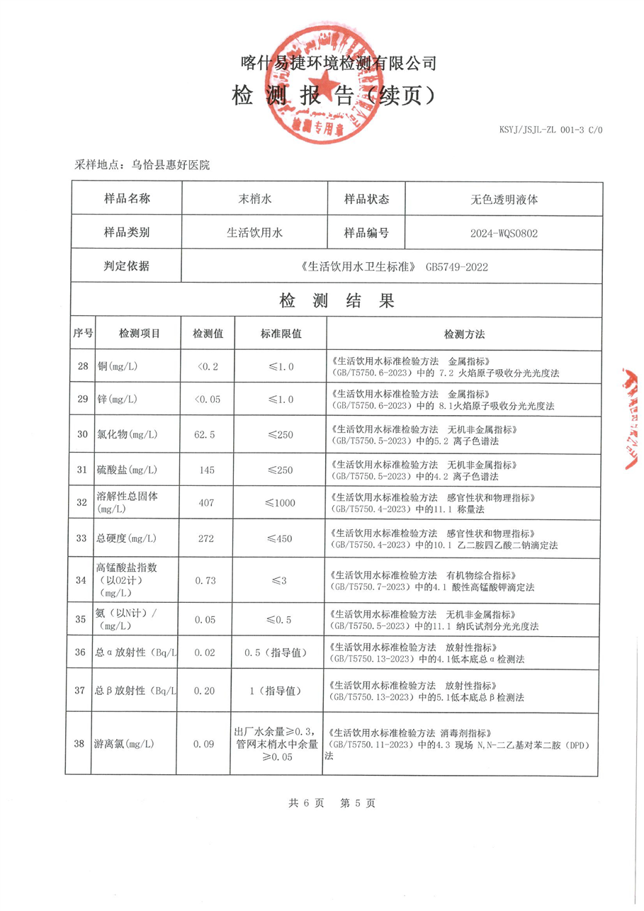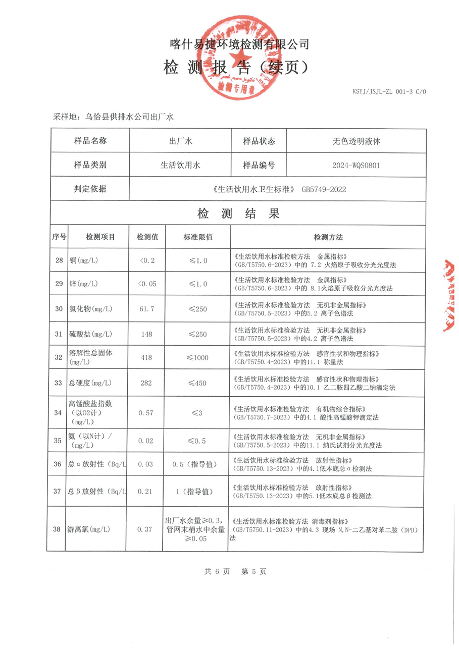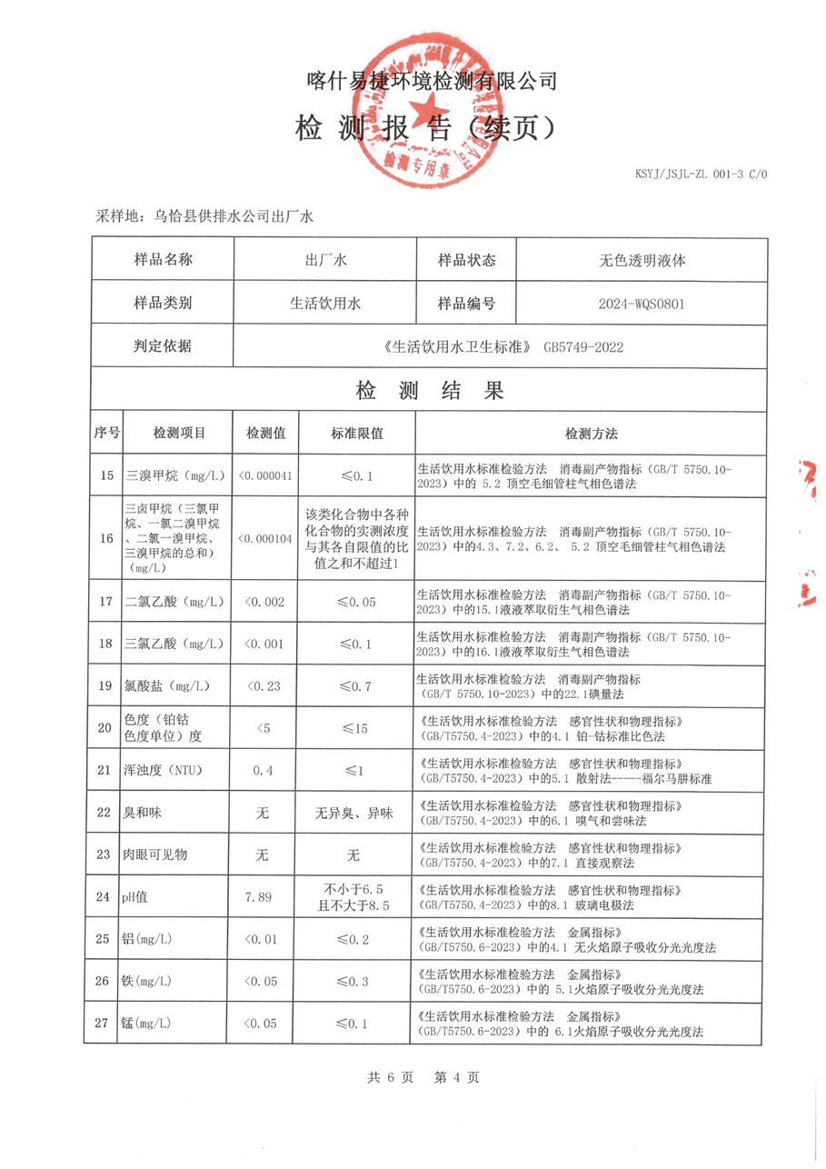 乌恰县8月水质检测报告
