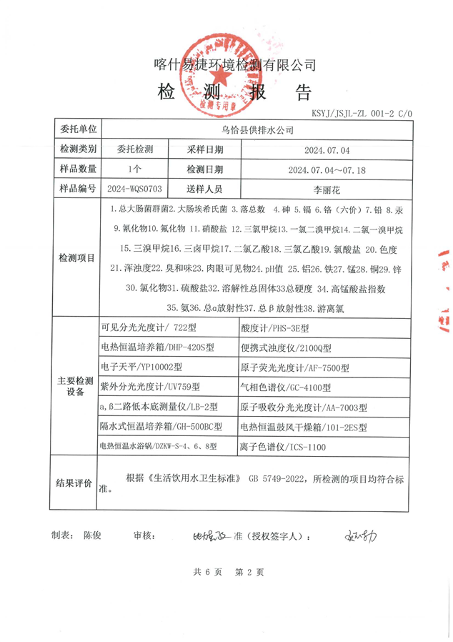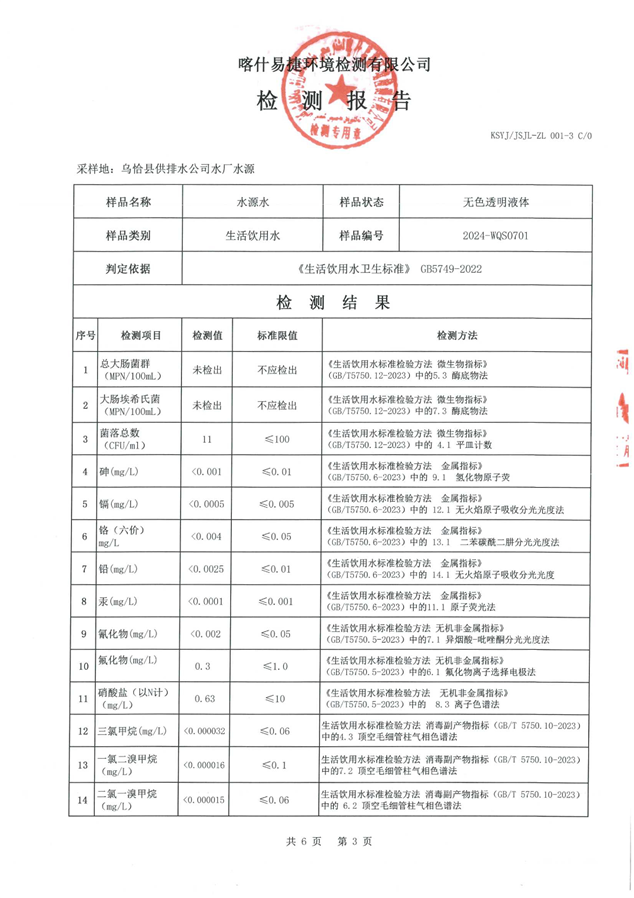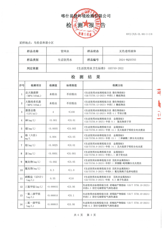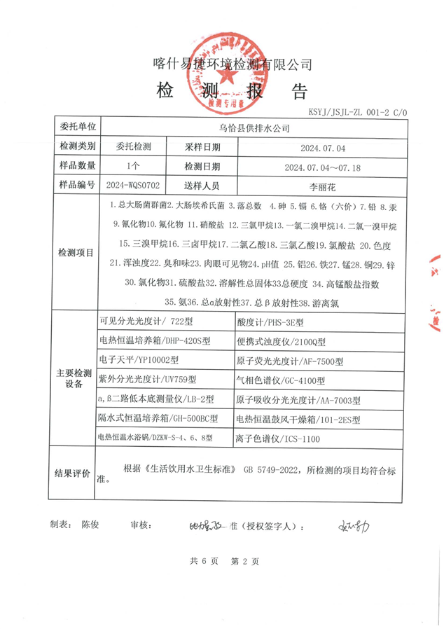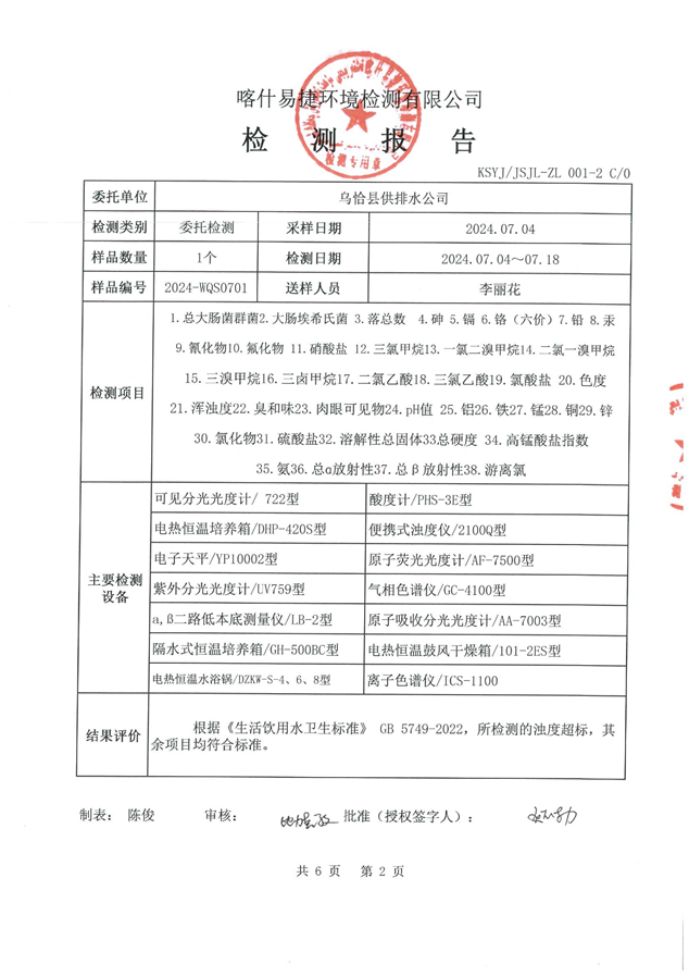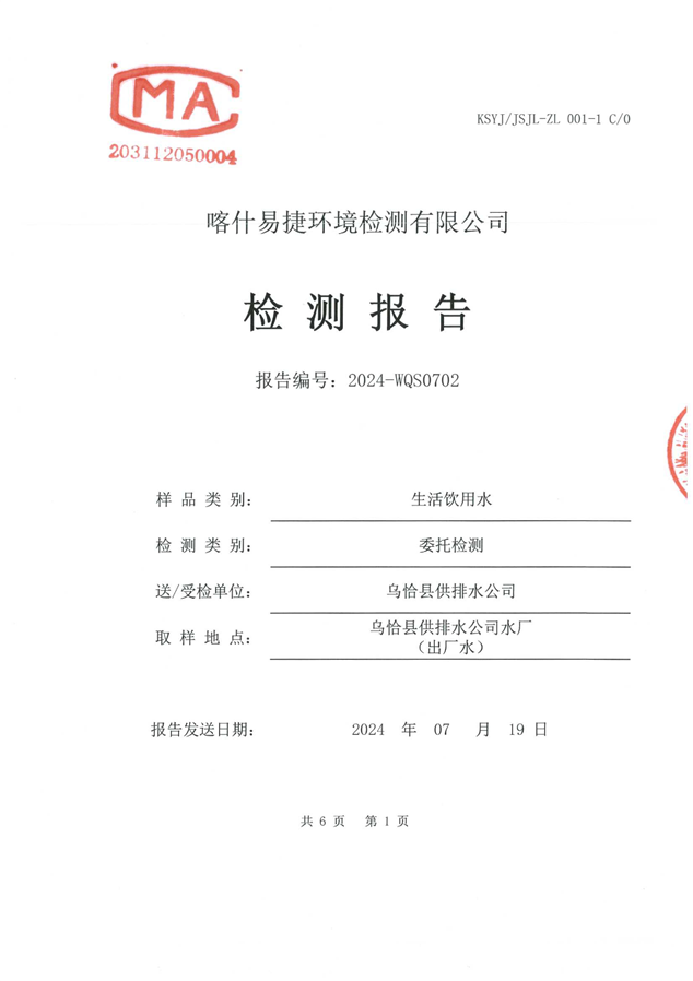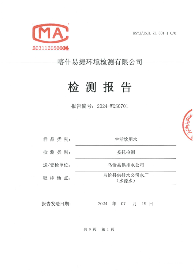乌恰县7月水质检测报告