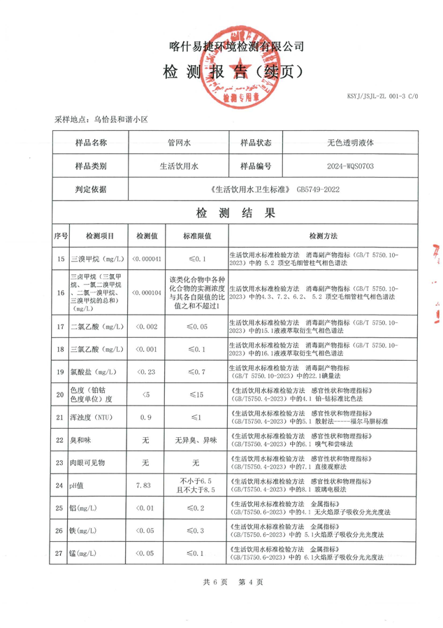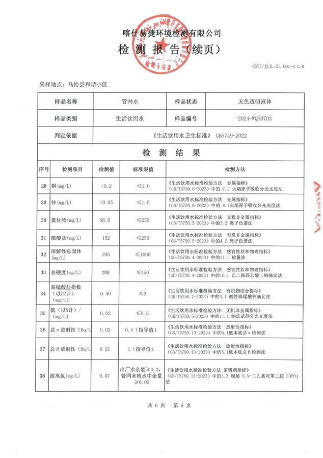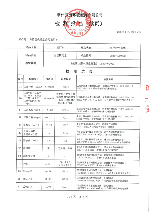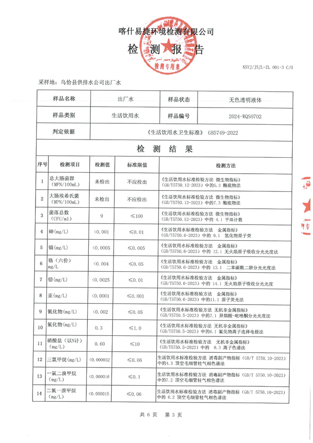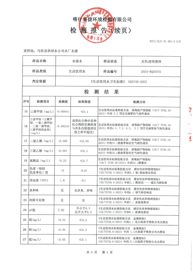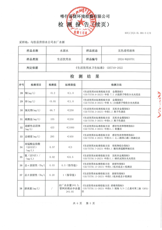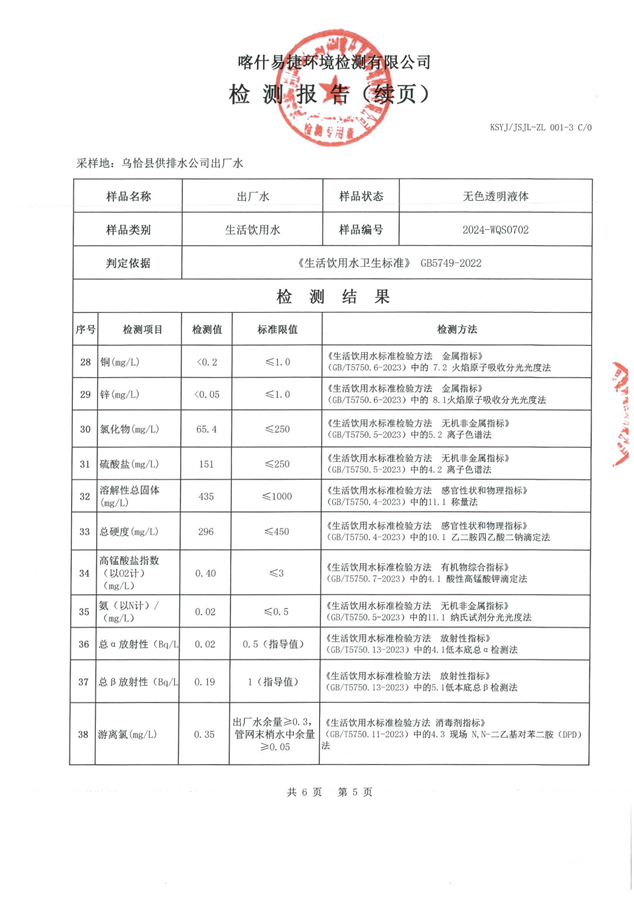 乌恰县7月水质检测报告