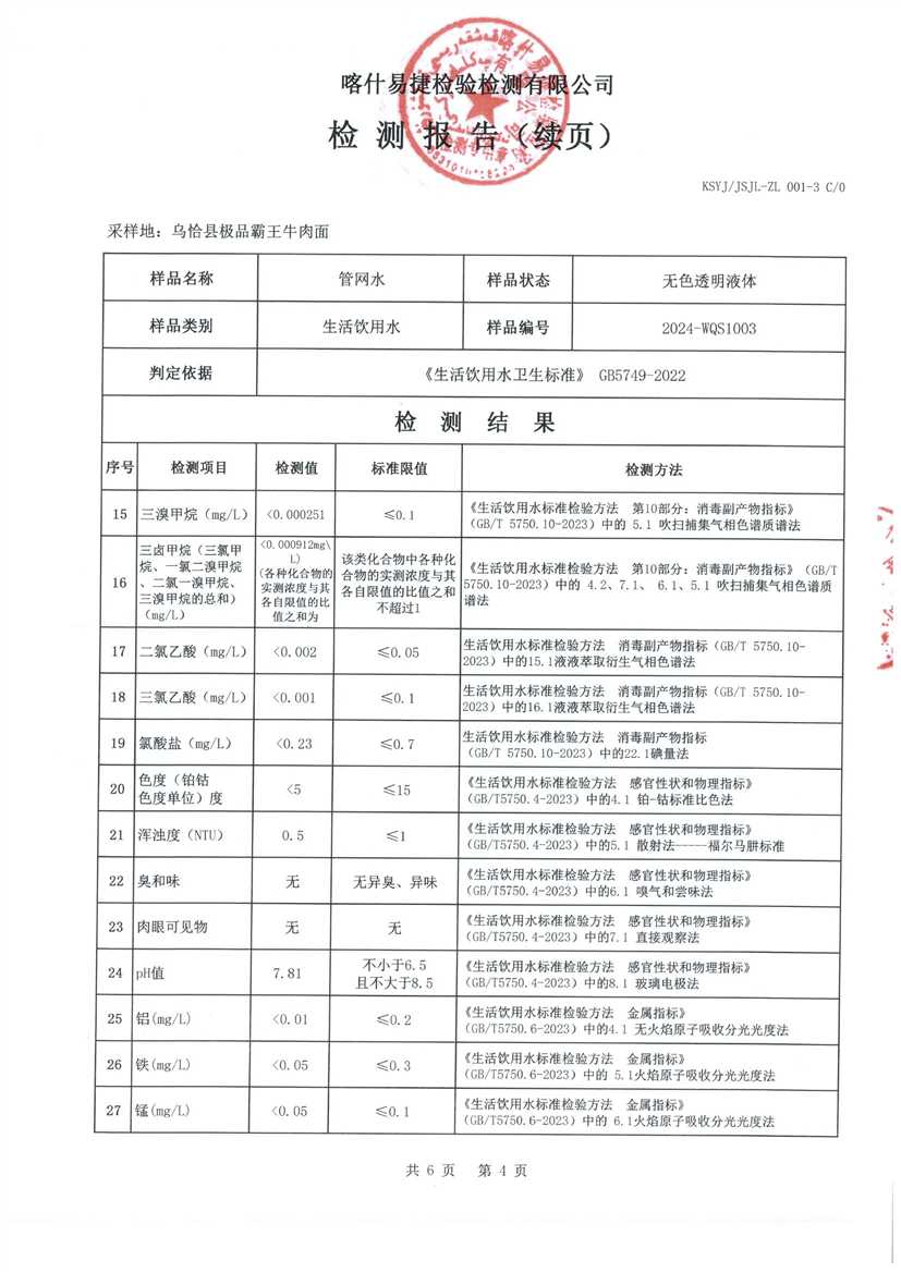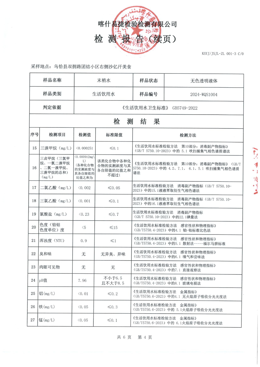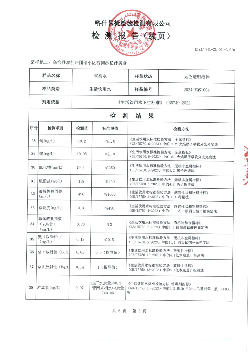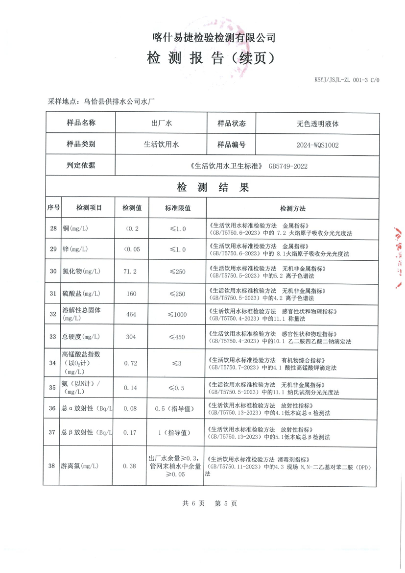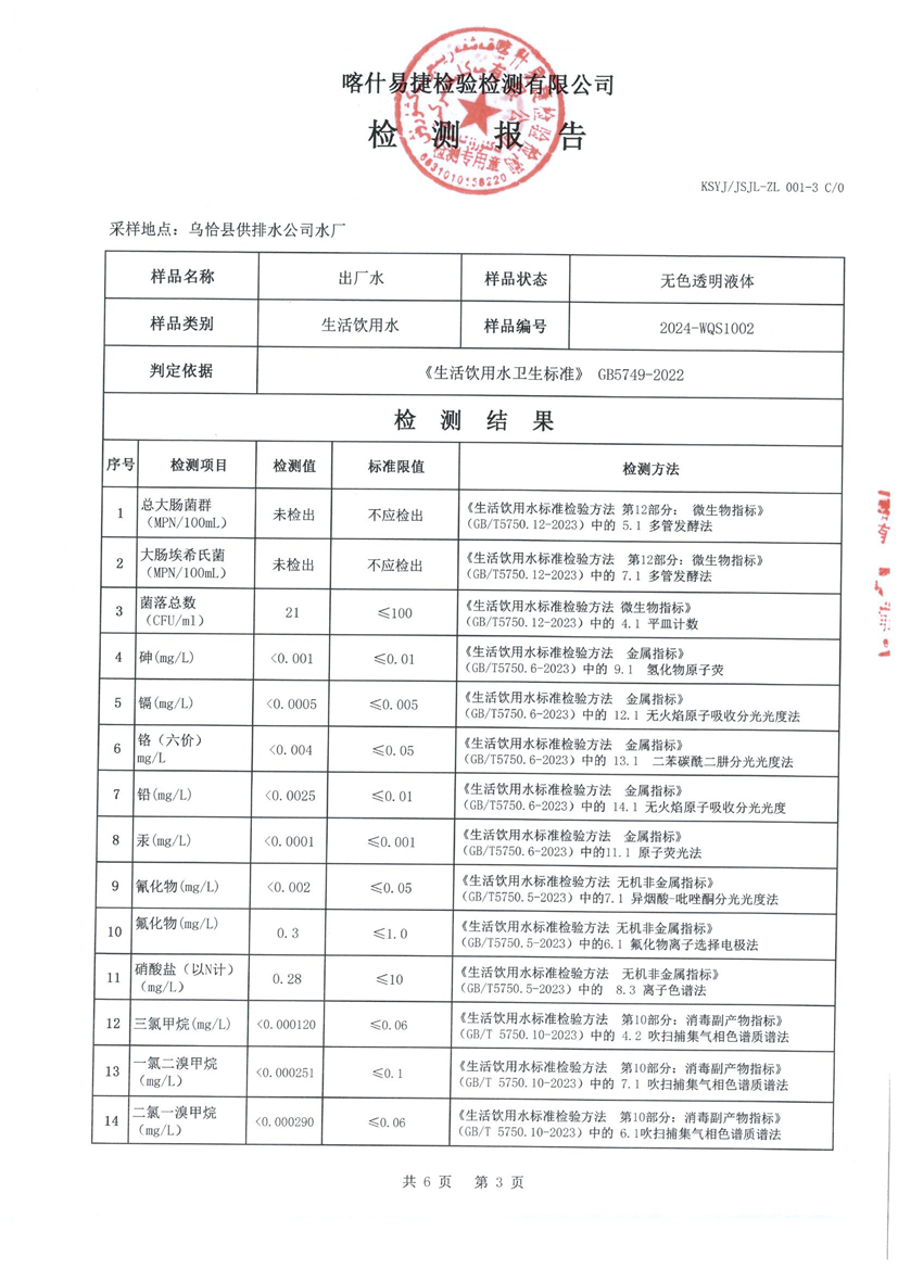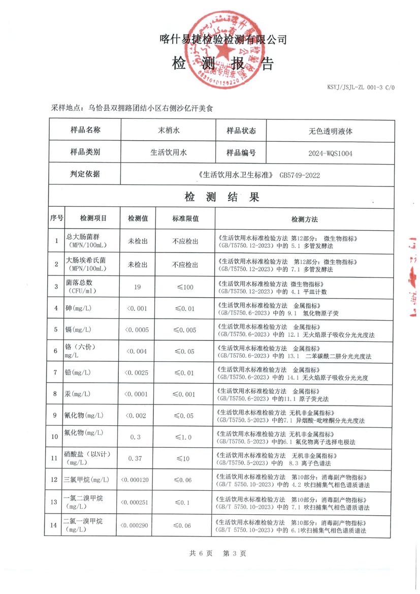 乌恰县10月水质检测报告