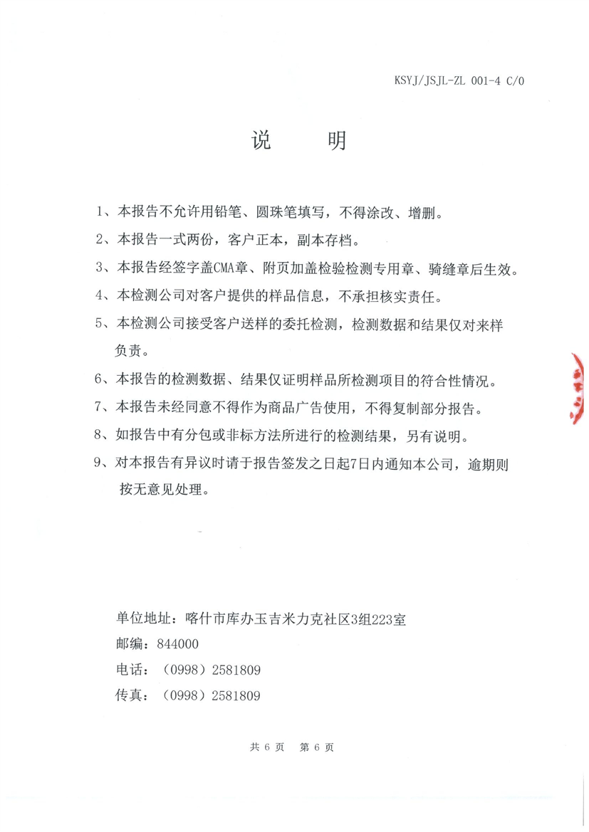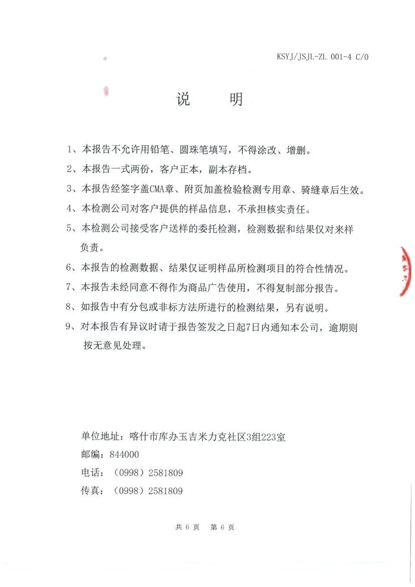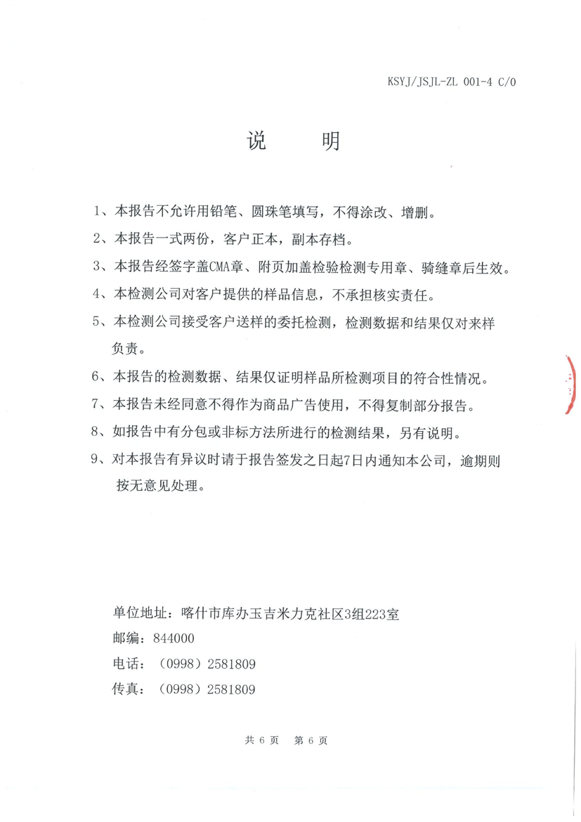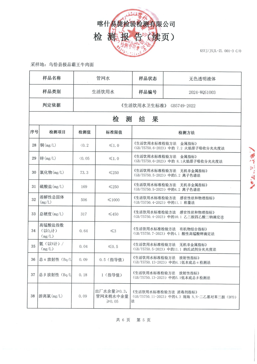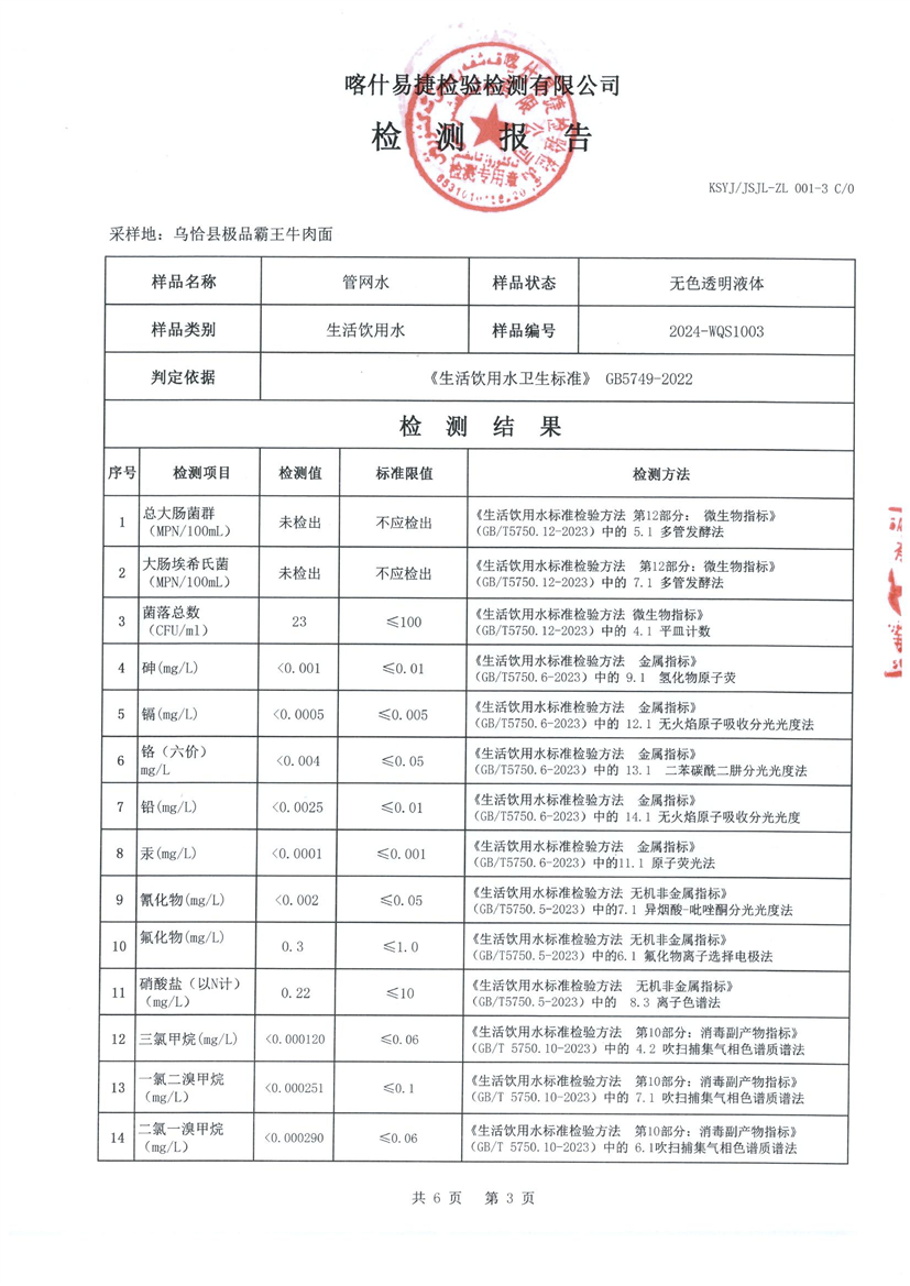 乌恰县10月水质检测报告