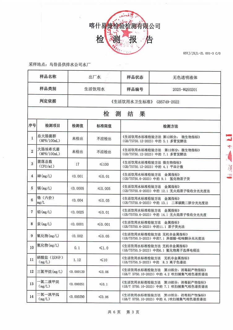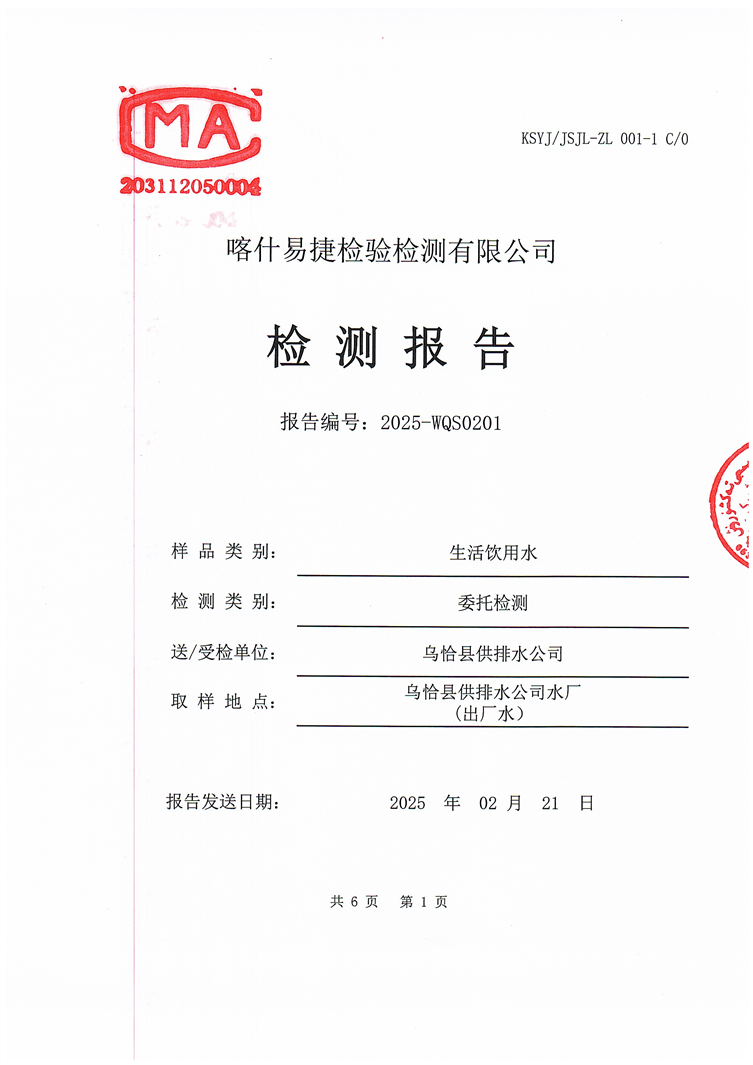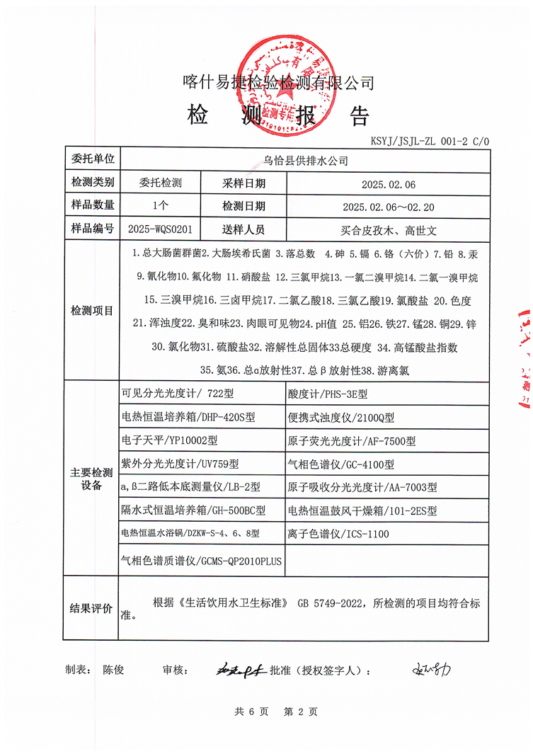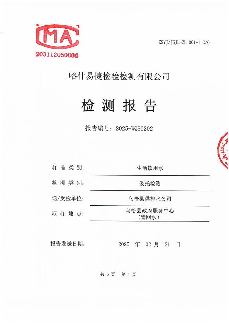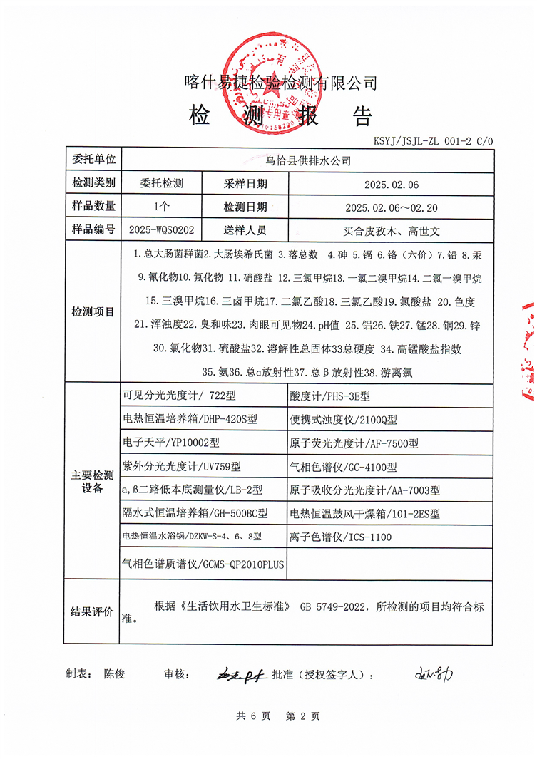 2025年2月乌恰县水质检测报告