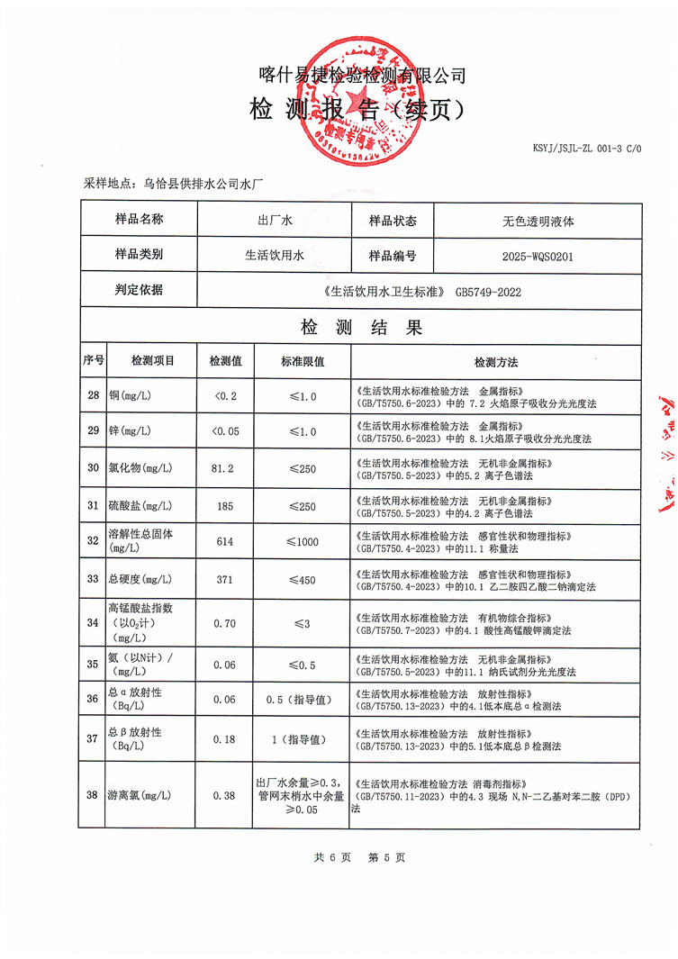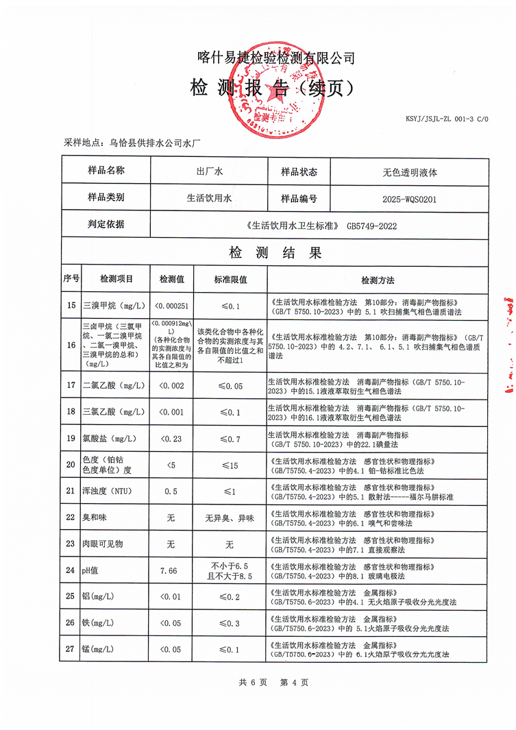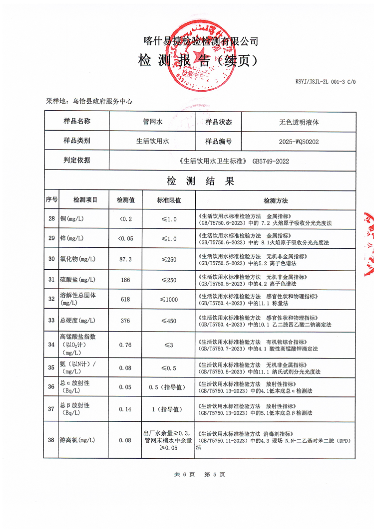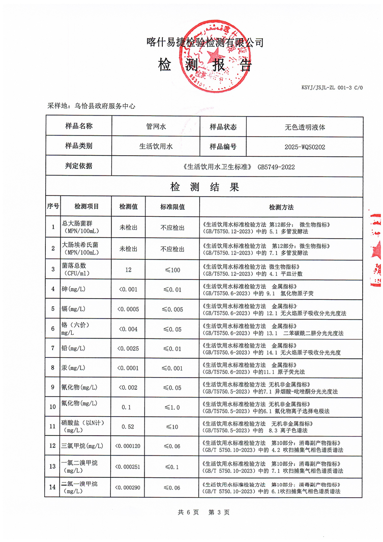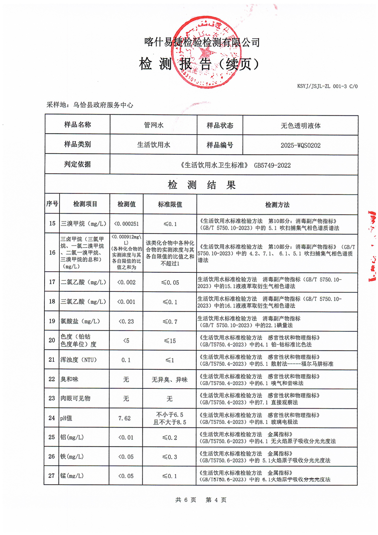 2025年2月乌恰县水质检测报告
