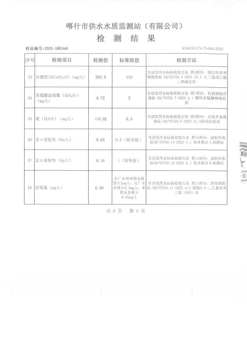 乌恰县2025年8月水质检测报告(生活饮用水)