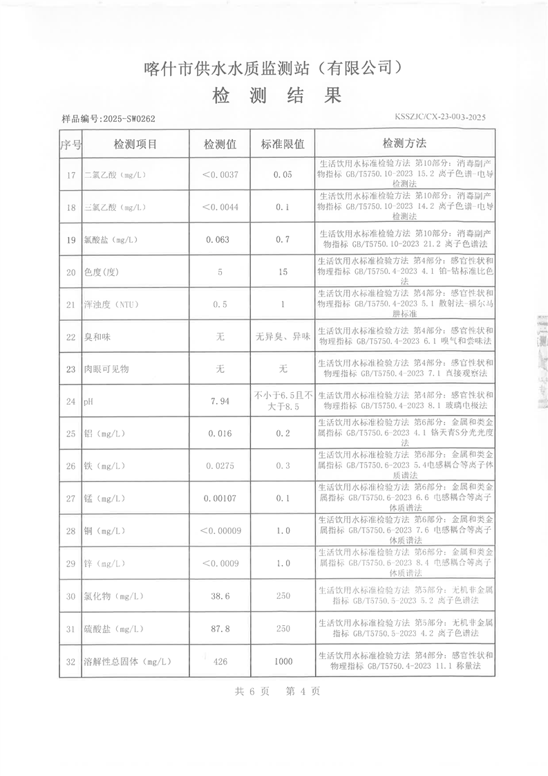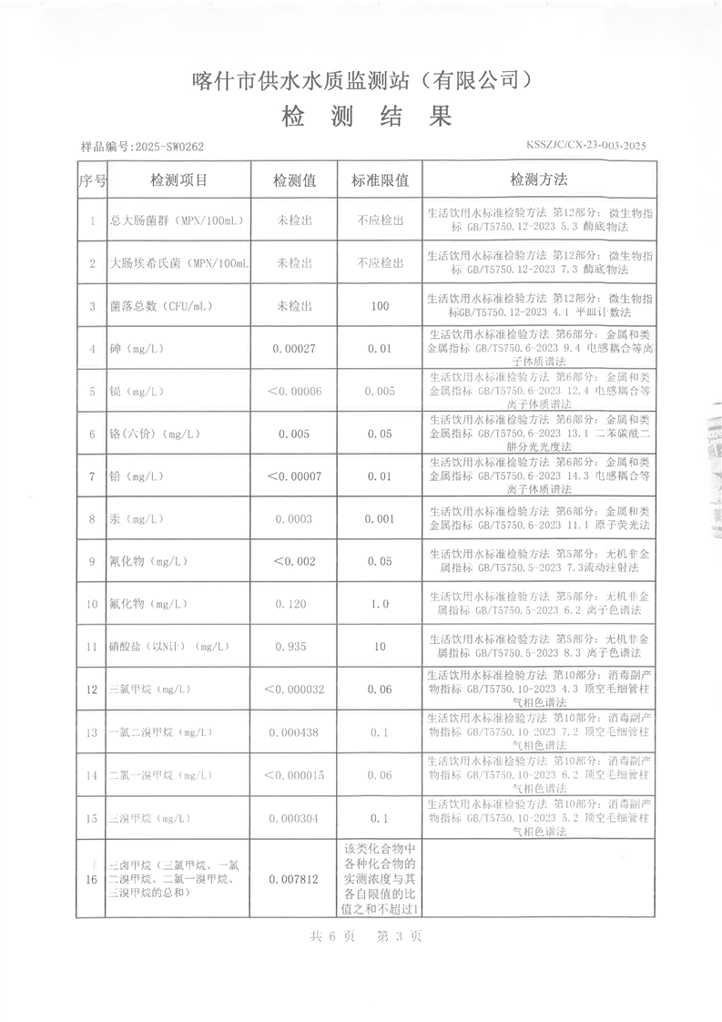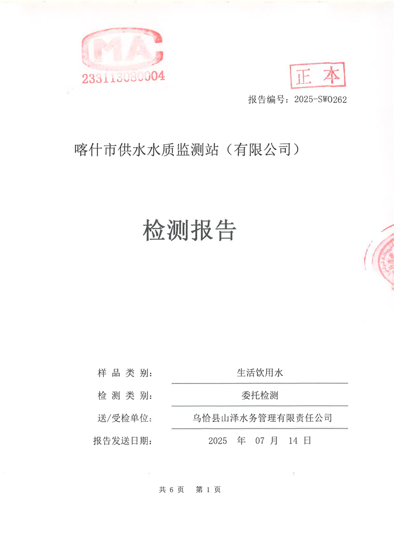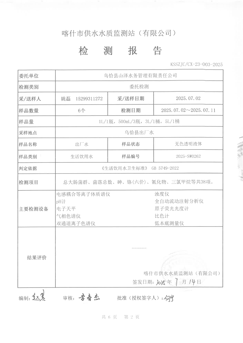 乌恰县2025年7月水质检测报告
