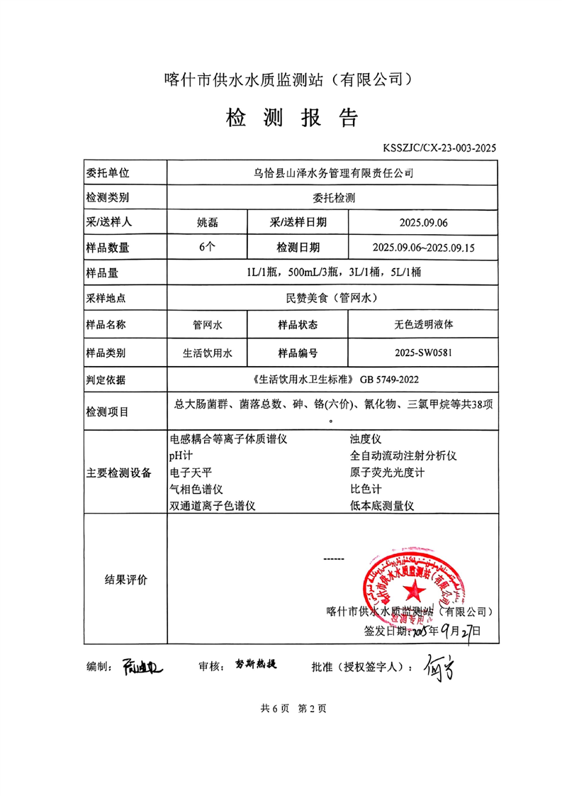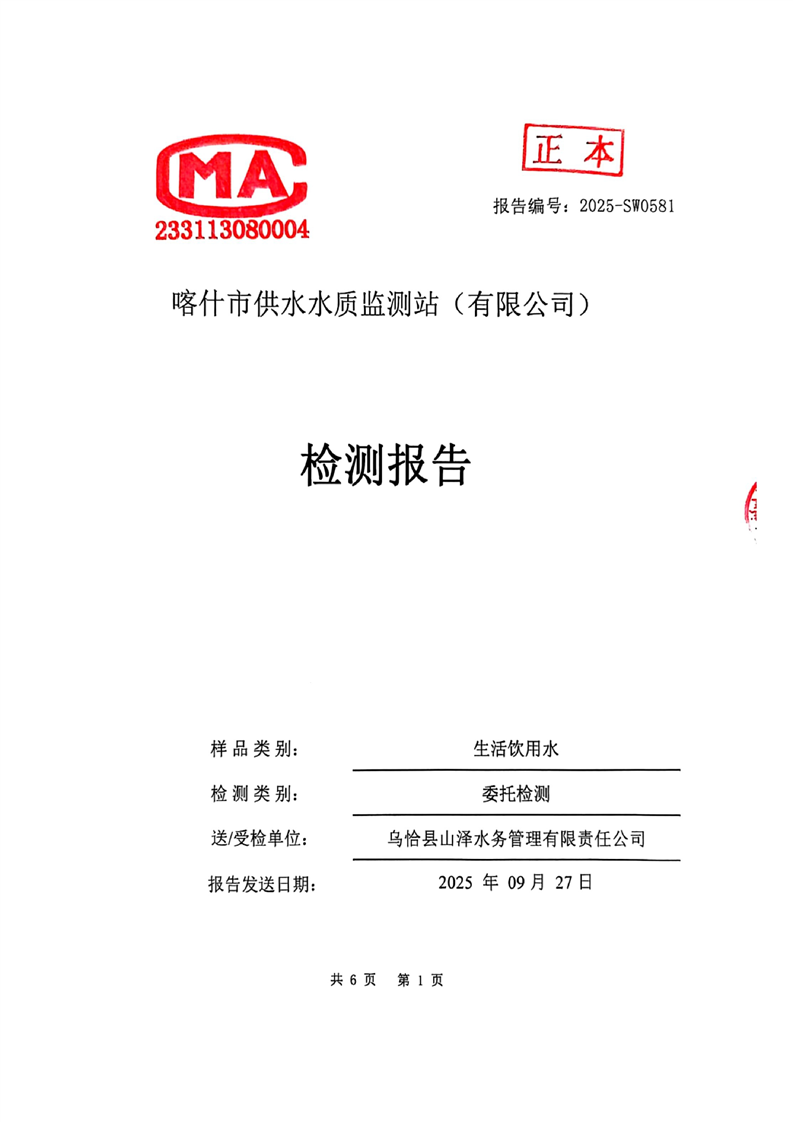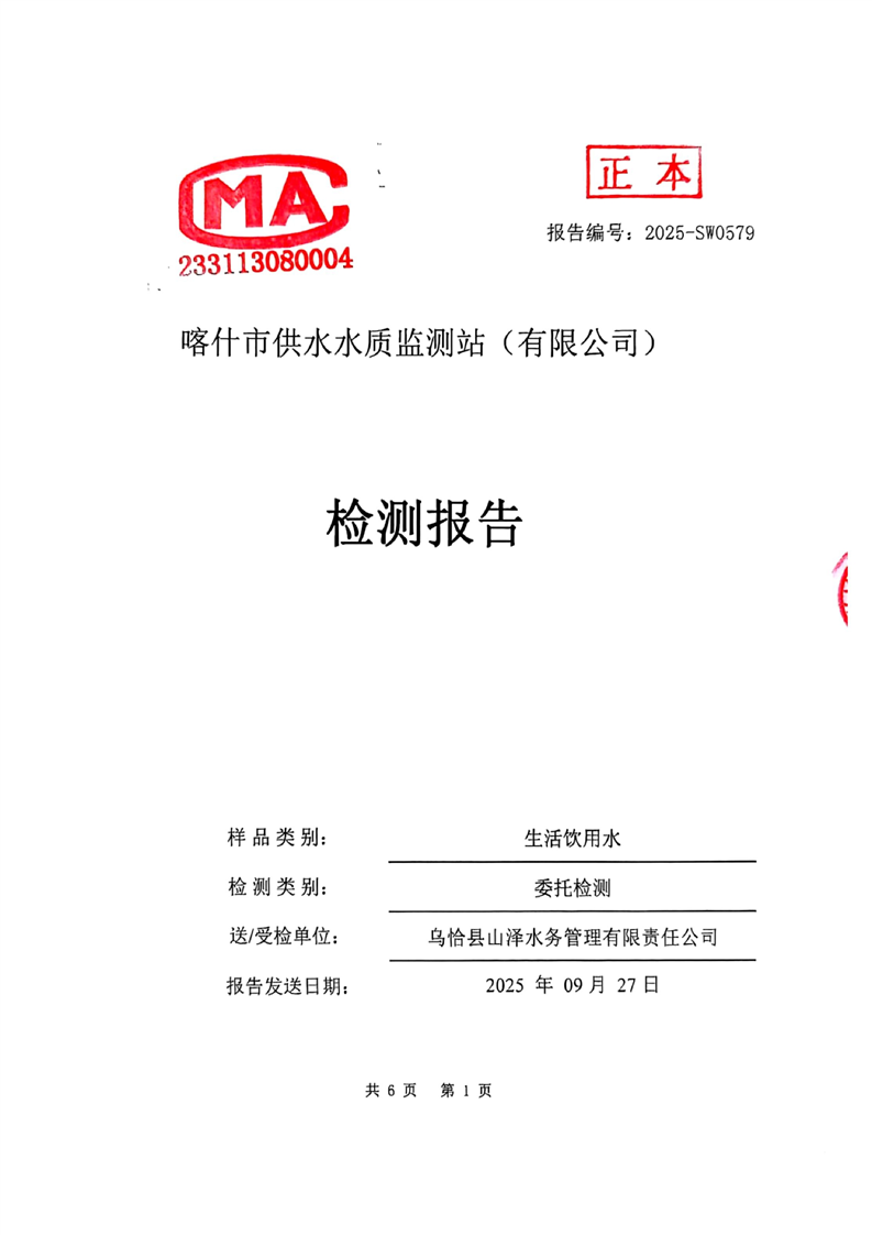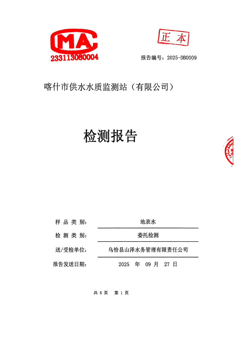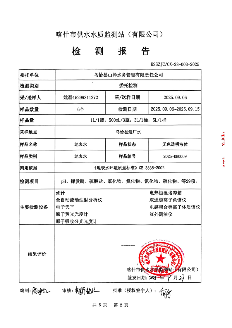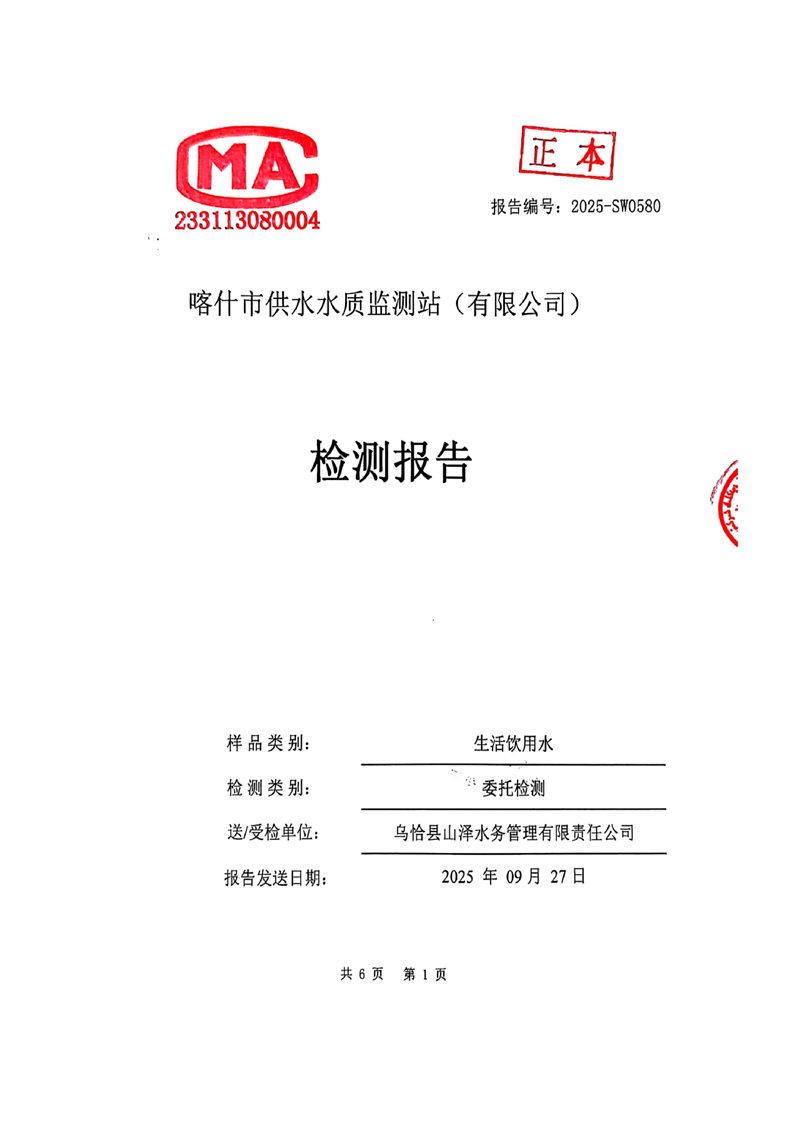 乌恰县2025年9月水质检测报告