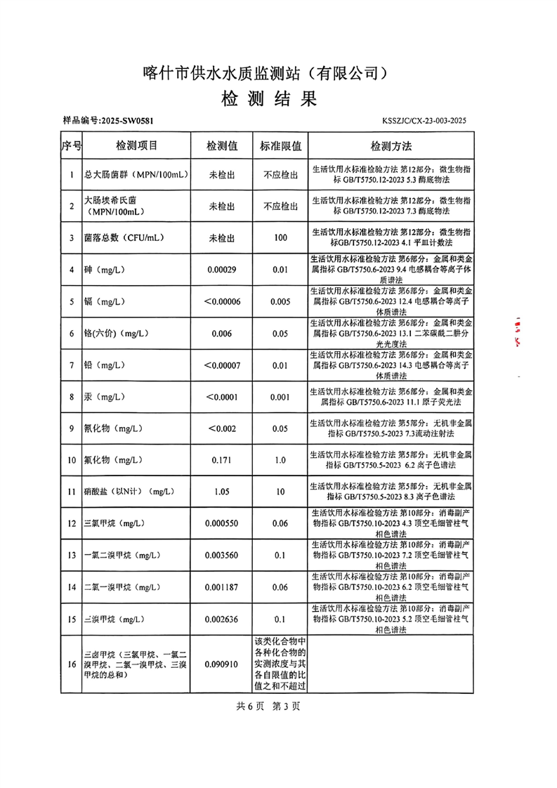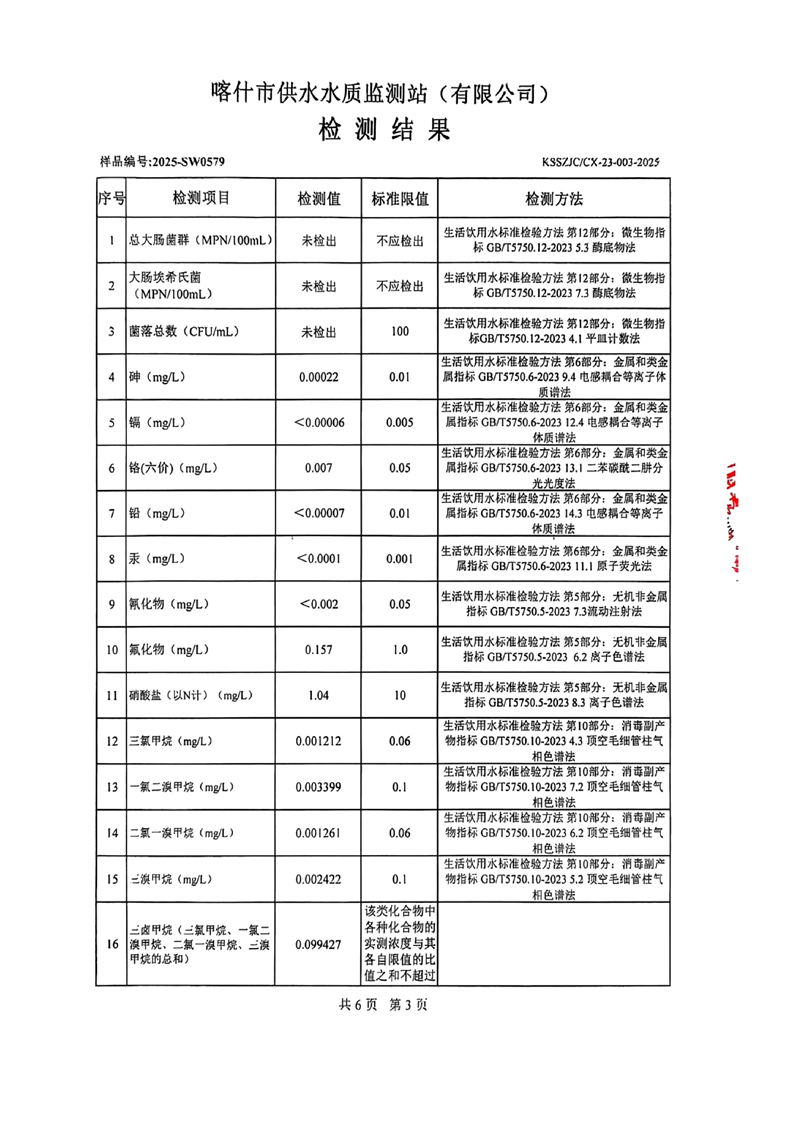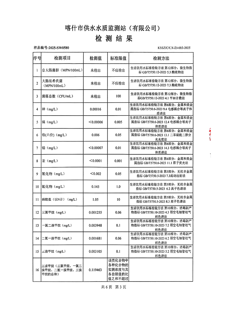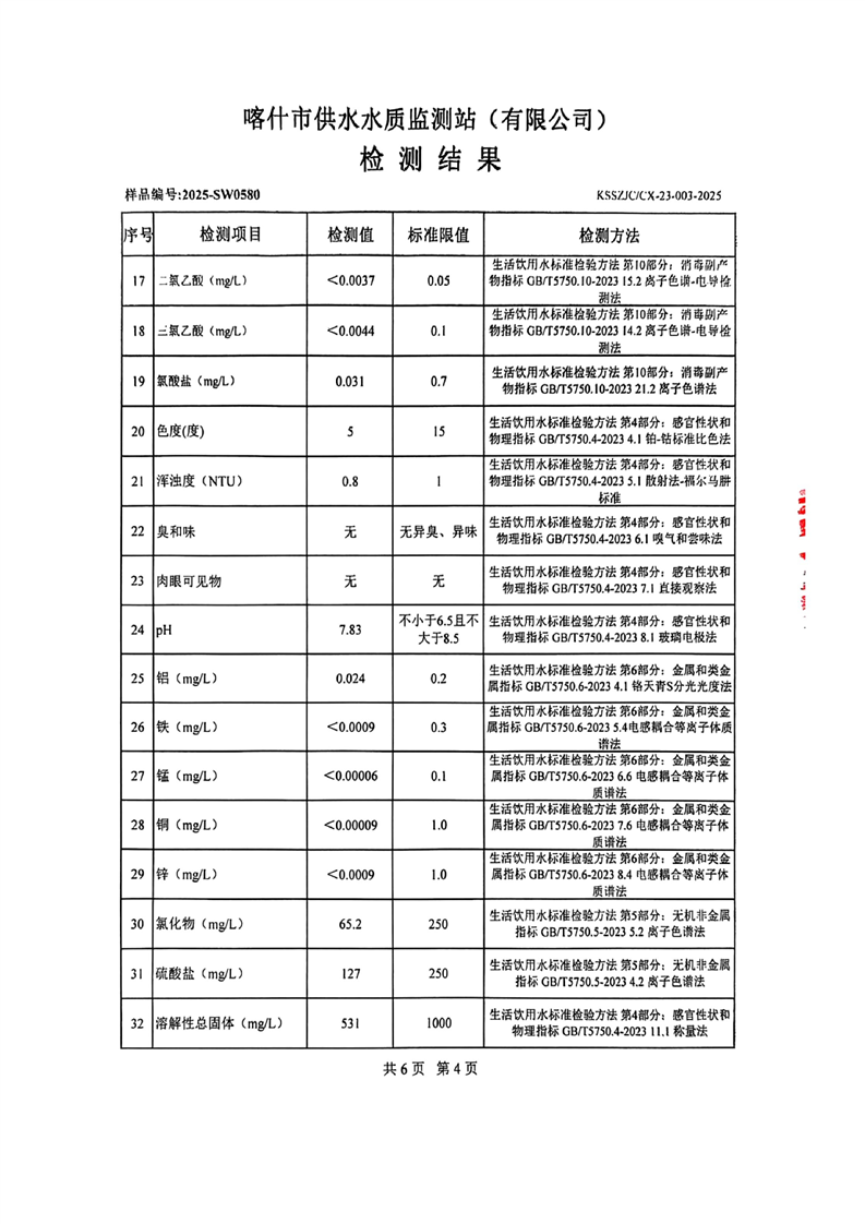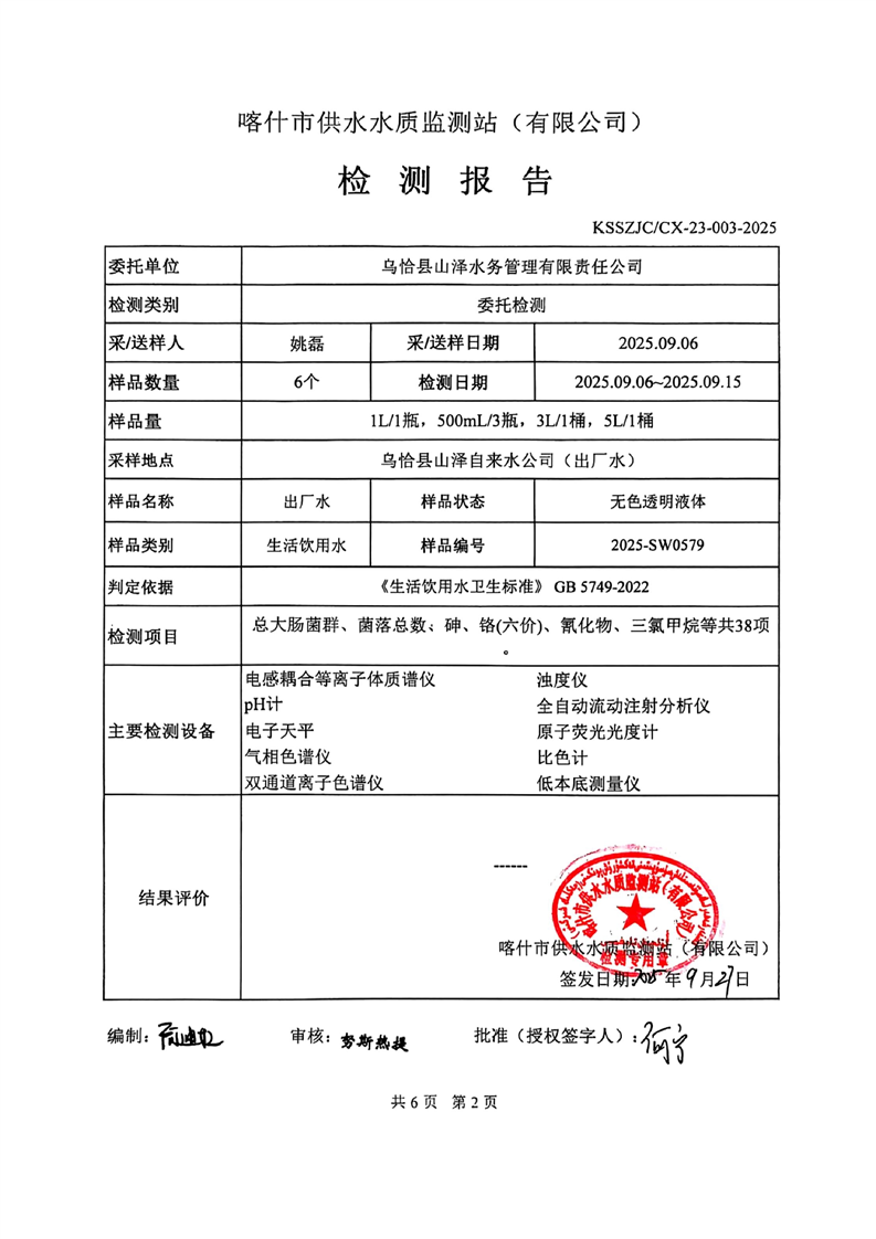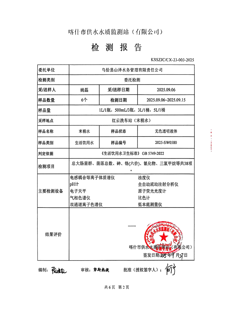 乌恰县2025年9月水质检测报告