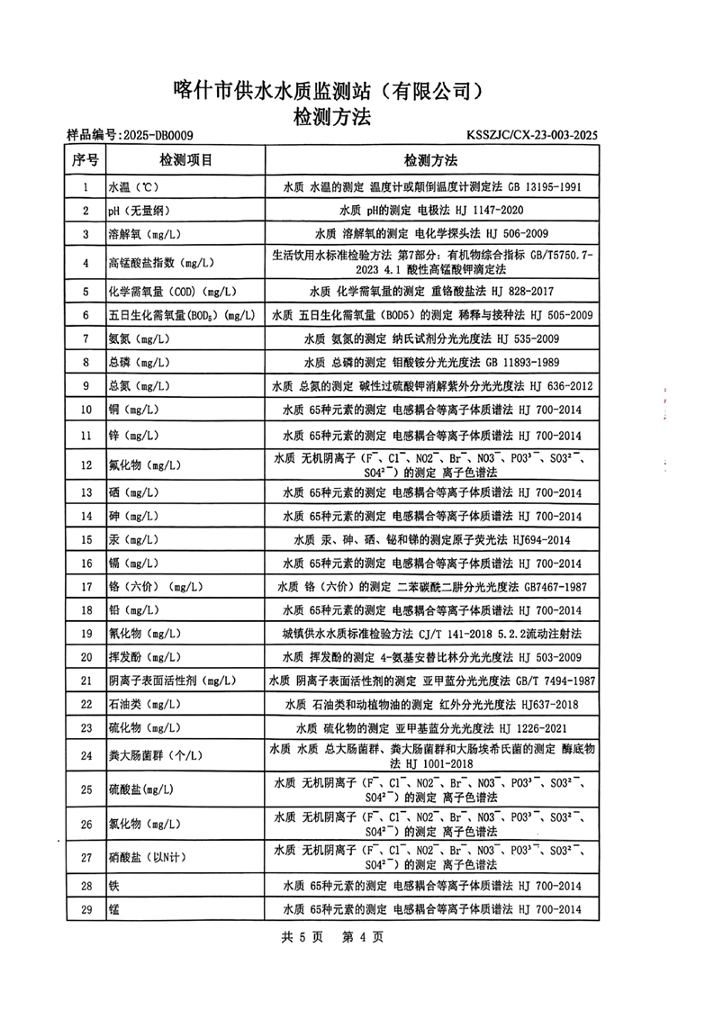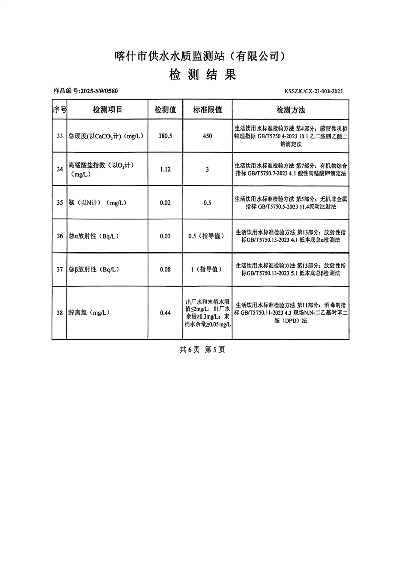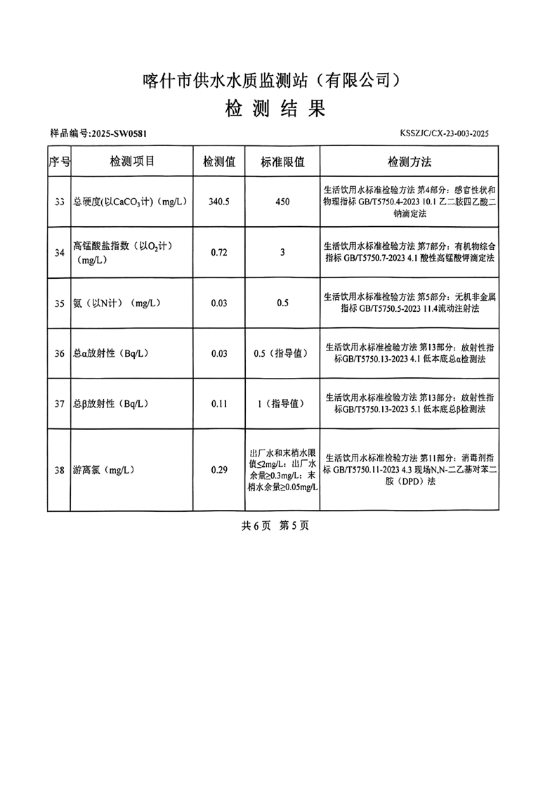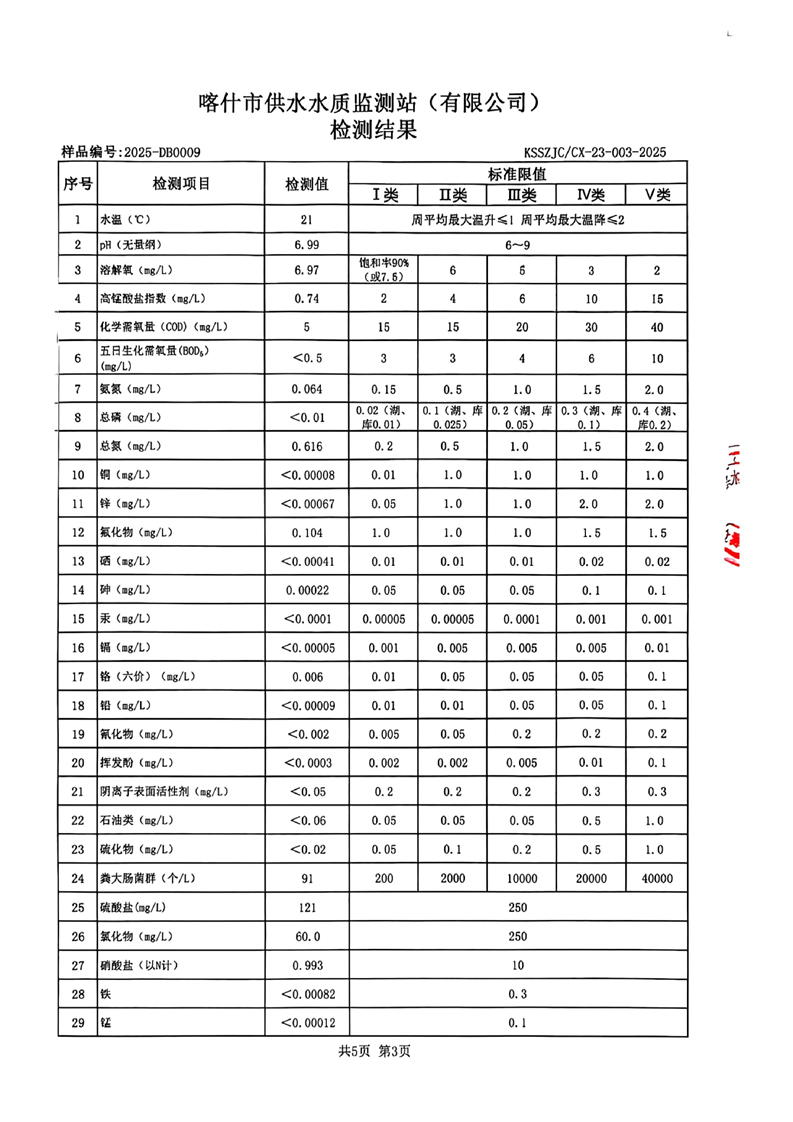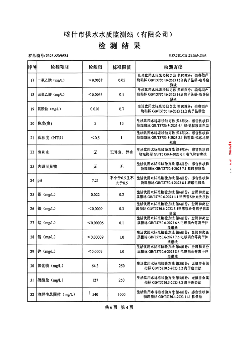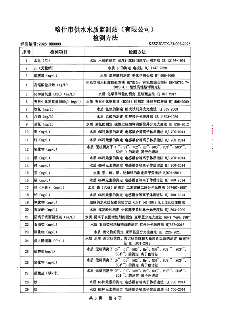 乌恰县2025年9月水质检测报告