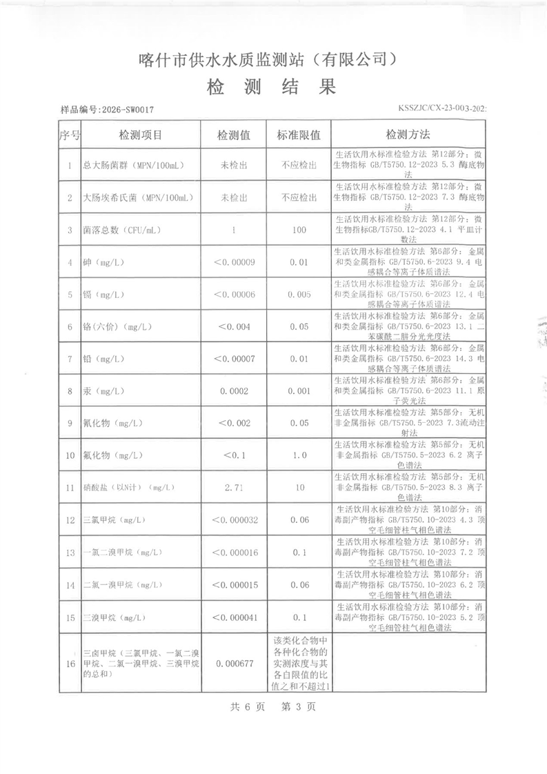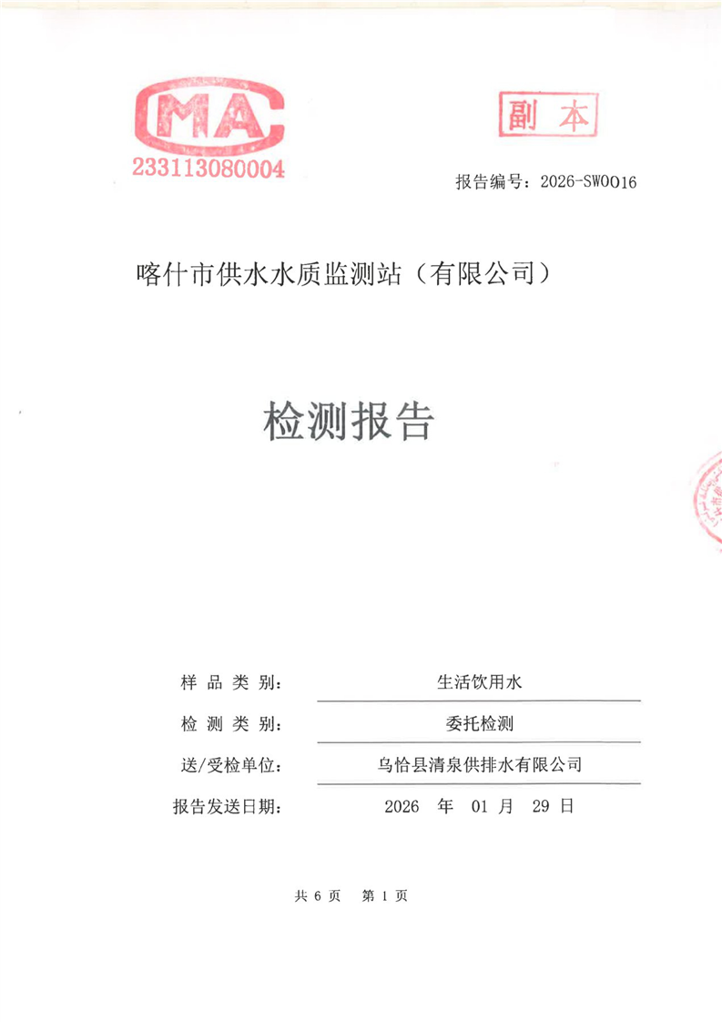 乌恰县2026年1月水质检测报告