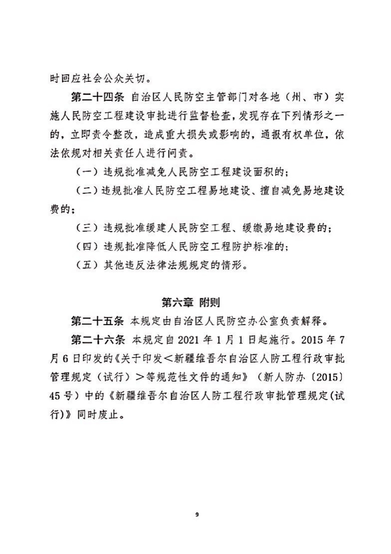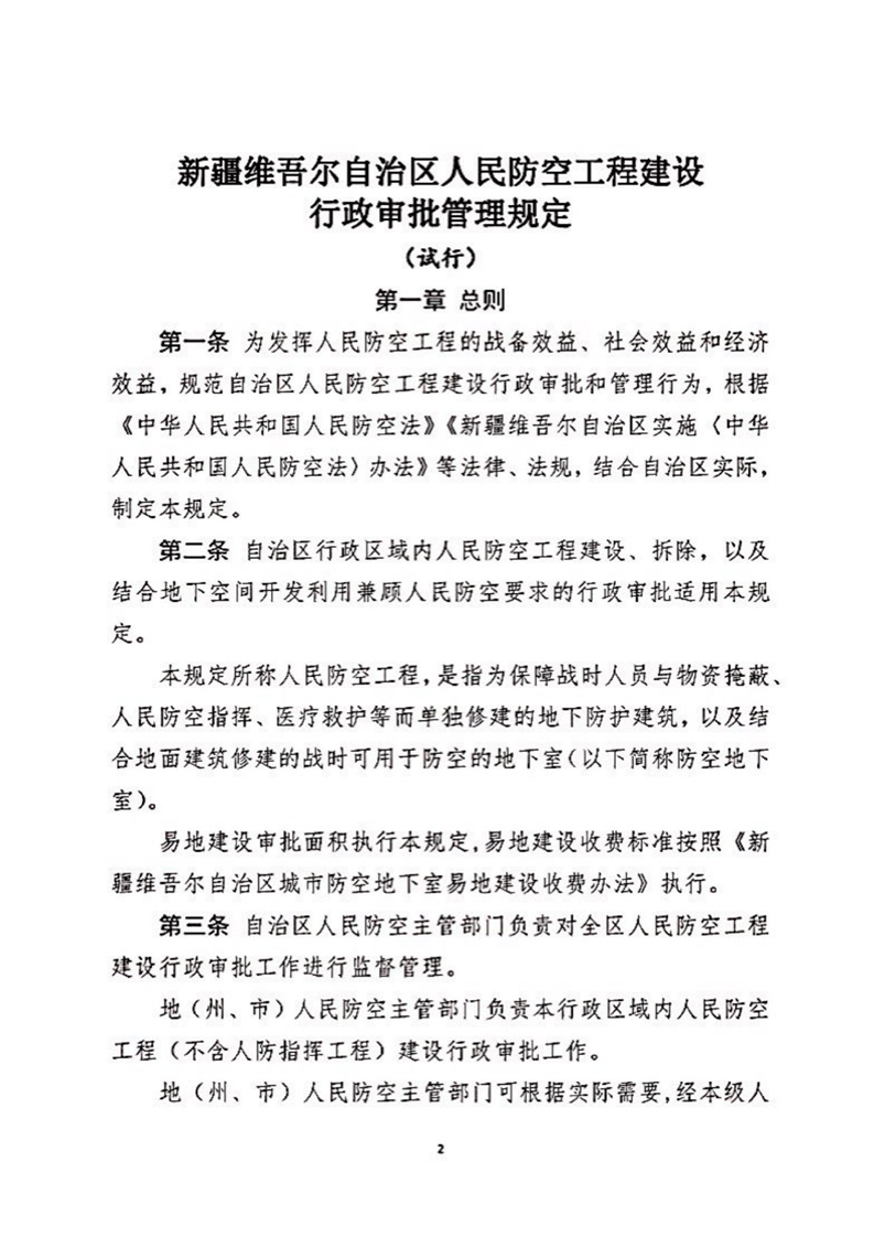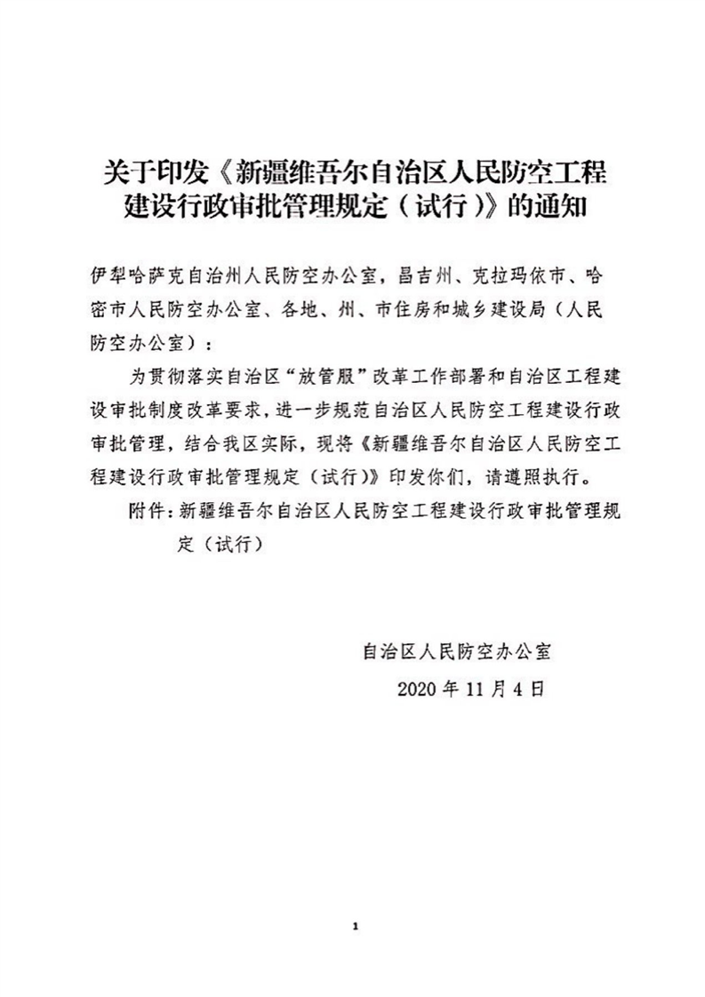 关于印发《新疆维吾尔自治区人民防空工程建设行政审批管理规定(试行)》的通知