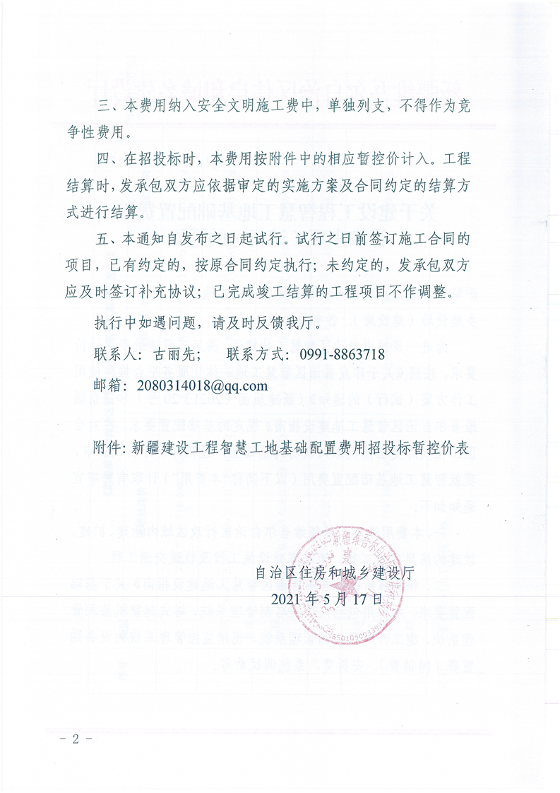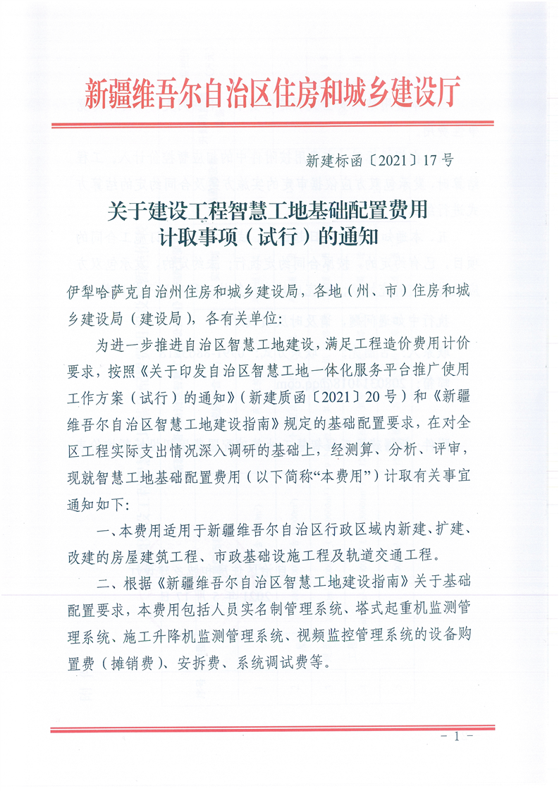 关于建设工程智慧工地基础配置费用计取事项(试行)的通知