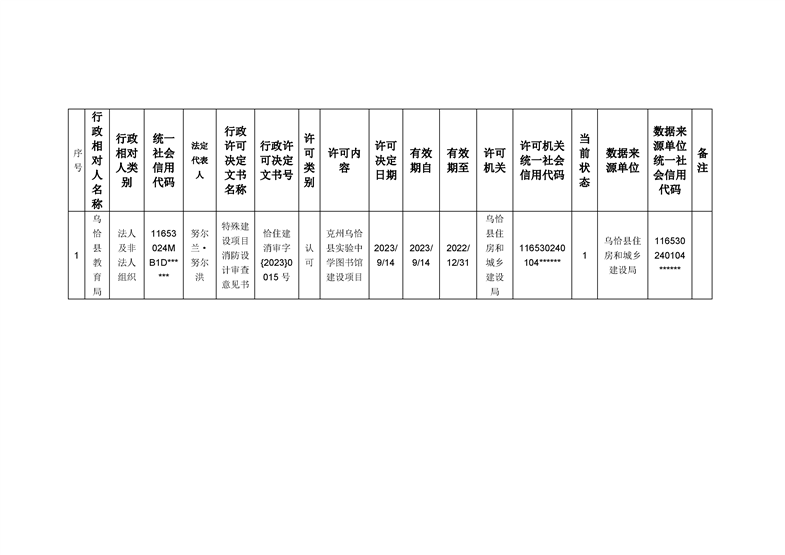 克州乌恰县实验中学图书馆建设项目行政许可公示