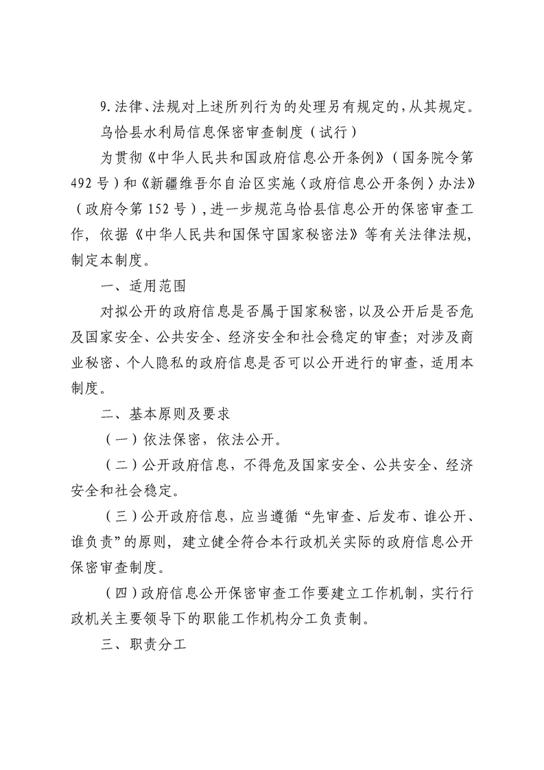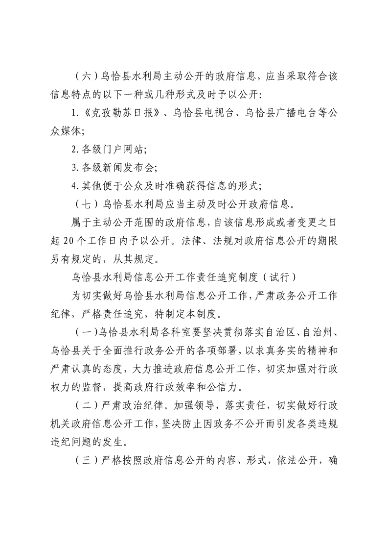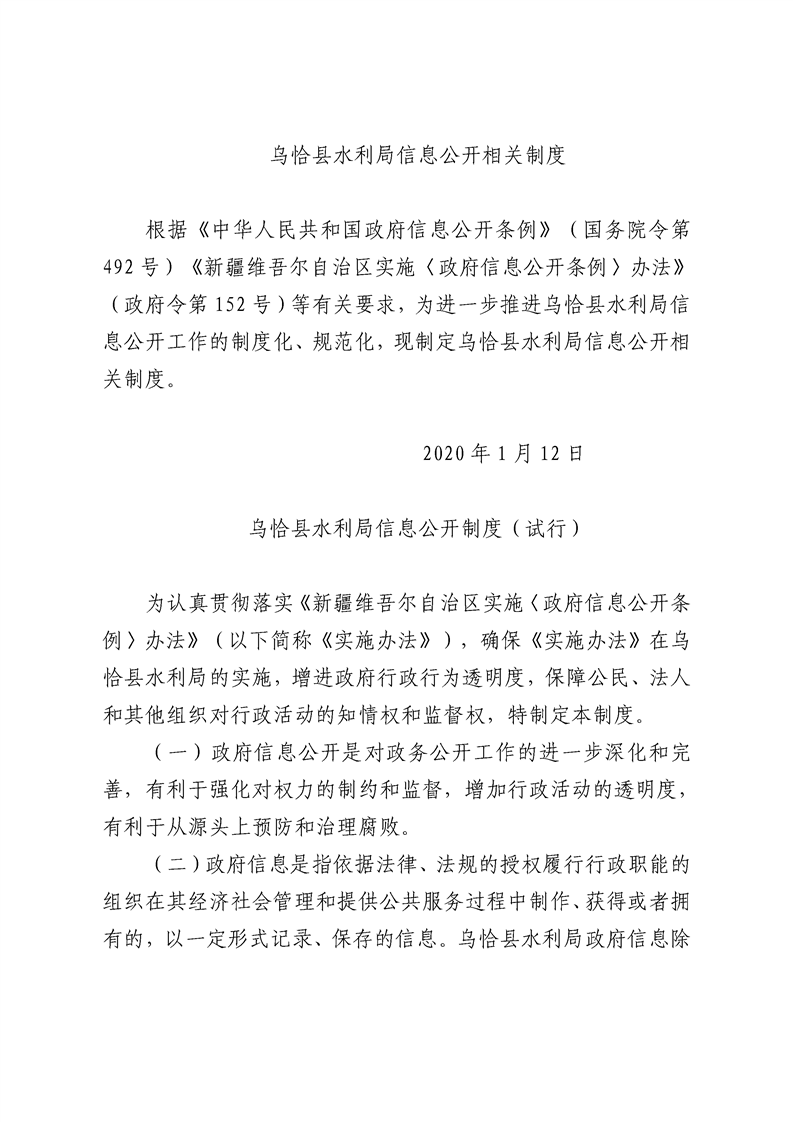乌恰县水利局信息公开相关制度(试行)