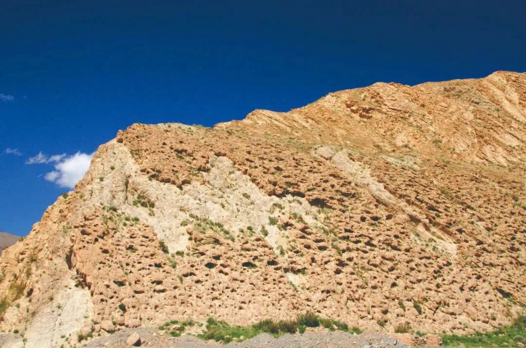 贝壳山,位于乌恰县境内,在这里,数以亿计的贝壳同含有盐碱的泥沙凝结在一起,层层叠叠,千姿百态,嵌满山体裸露的岩石。贝壳的轮廓、纹路清晰可辨,层层贝壳固化为岩,冷凝为山。曾经的沧海不在,更迭的岁月就此沉寂。从山脚往上攀登,随处可见山上的岩石上面都嵌满贝壳,在那里,你可以真切地感受一次海陆的变迁。(注:需办理边境通行证)