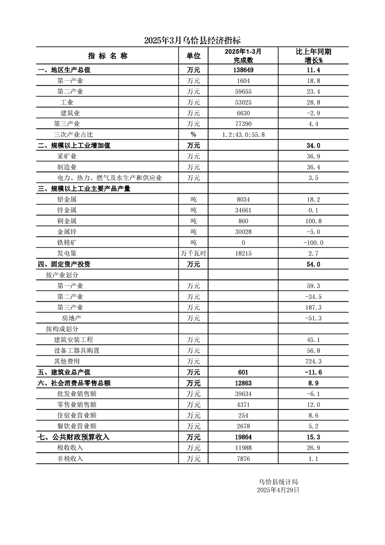 | 发布机构 | 乌恰县统计局 | 发布日期 | 2025-04-29 11:08 |