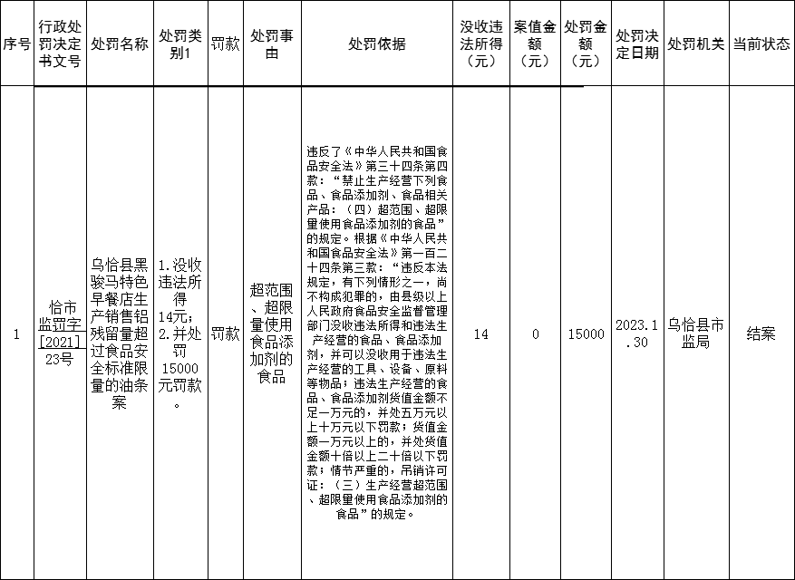 2023年乌恰县市场监督管理局行政处罚案件(1月)