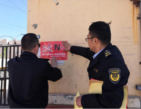 为加强禁止向未成年人出售烟酒工作的监管力度,进一步促进青少年健康成长与发展,保护未成年人合法权益,保障未成年人的身心健康,5月5日下午,乌恰县市场监督管理局执法人员在校园周边销售烟酒的超市、商店及人流量多的场所开展向未成年人禁售烟酒的宣传活动。执法人员向经营者宣传了《未成年人保护法》,并在烟酒柜台前醒目位置及人流量多的市场张贴了“禁止向未成年人销售酒和烟草酒”警示牌。
