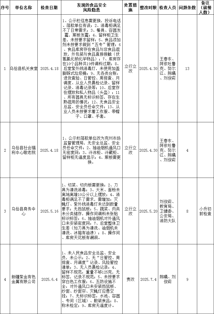 2025年第二季度食品生产、经营企业安全监督检查结果公示(集中用餐单位)