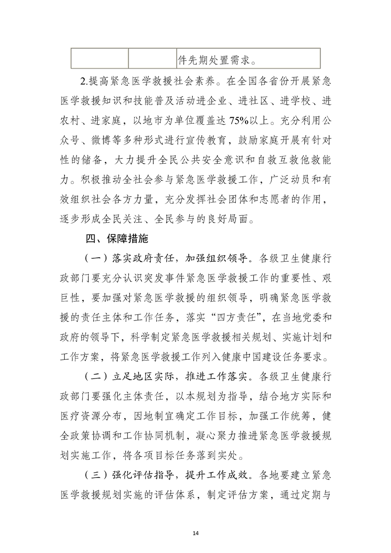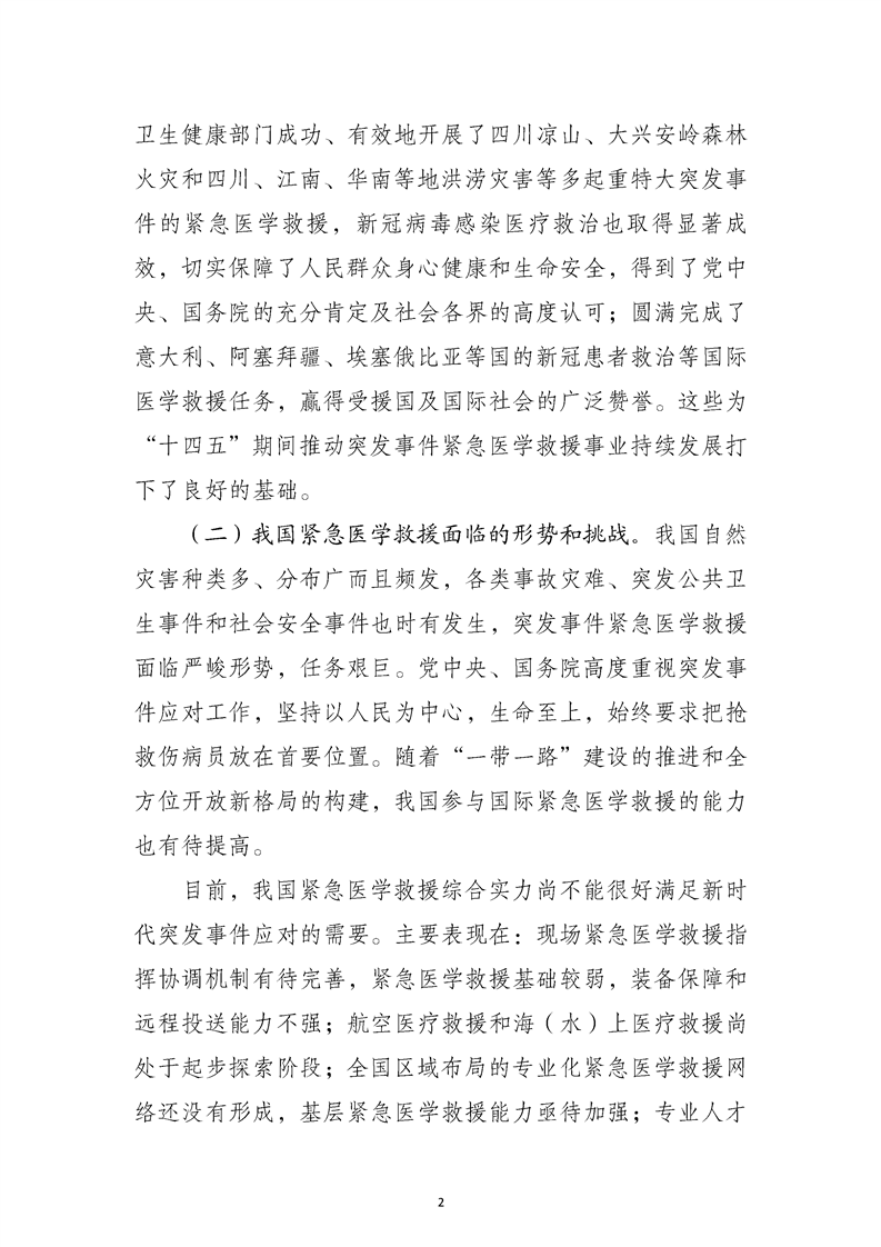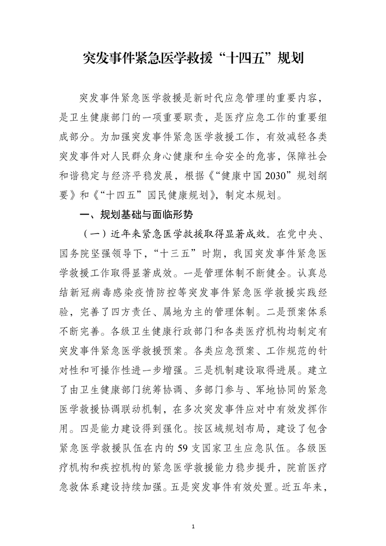 国家卫生健康委关于印发突发事件紧急医学救援“十四五”规划的通知