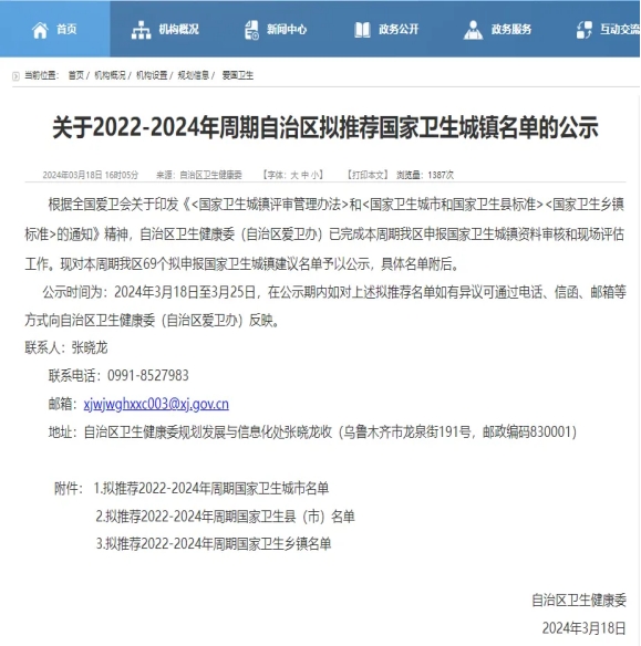 拟推荐2022-2024年周期国家卫生乡镇名单