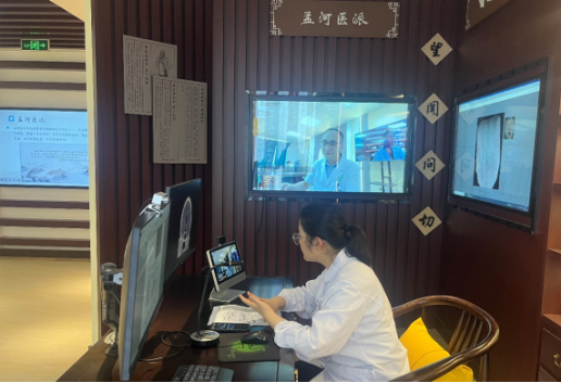 通过5G连线,让医护人员和患者与后方专家进行“面对面”交流,对患者进行线上“望、闻、问、切”,可为患者制定详尽诊疗方案。5G+孟河医派智能化远程诊疗平台的启用让两地医疗团队能够随时随地开展5G高清远程问诊,促进了优质中医医疗资源下沉。