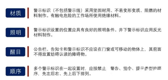 《工作场所职业卫生管理规定》第十五条存在或者产生职业病危害的工作场所、作业岗位、设备、设施,应当按照《工作场所职业病危害警示标识》(GBZ158)的规定,在醒目位置设置图形、警示线、警示语句等警示标识和中文警示说明。警示说明应当载明产生职业病危害的种类、后果、预防和应急处置措施等内容。