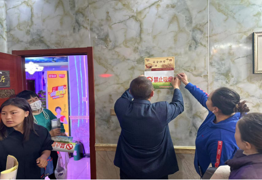 工作人员通过悬挂横幅,发放宣传单、健康咨询、发放控烟宣传折页,商铺、个人诊所、食堂等公共场所张贴控烟标志、向过往群众宣传“吸烟的危害”等控烟核心信息等形式进行宣传,呼吁广大群众为了自己及家人的健康,不要在室内、公共场所吸烟,共同营造健康、清洁、无烟的就诊及生活环境。