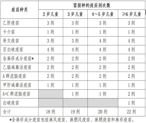 查验疫苗种类及剂次是怎么规定的?不同年龄段儿童对应的需完成接种疫苗种类和剂次数如下: