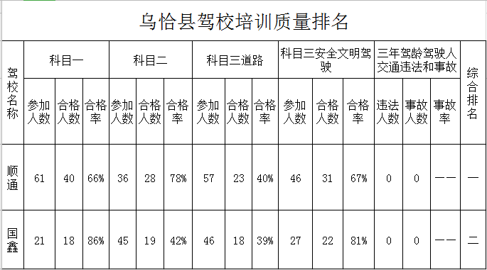 乌恰县驾培机构2020年9月份培训质量排名公示