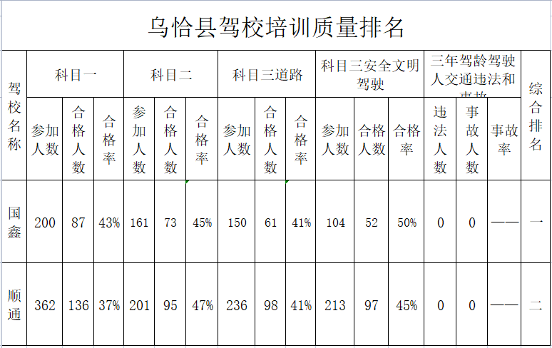 乌恰县驾培机构2021年8月份培训质量排名公示