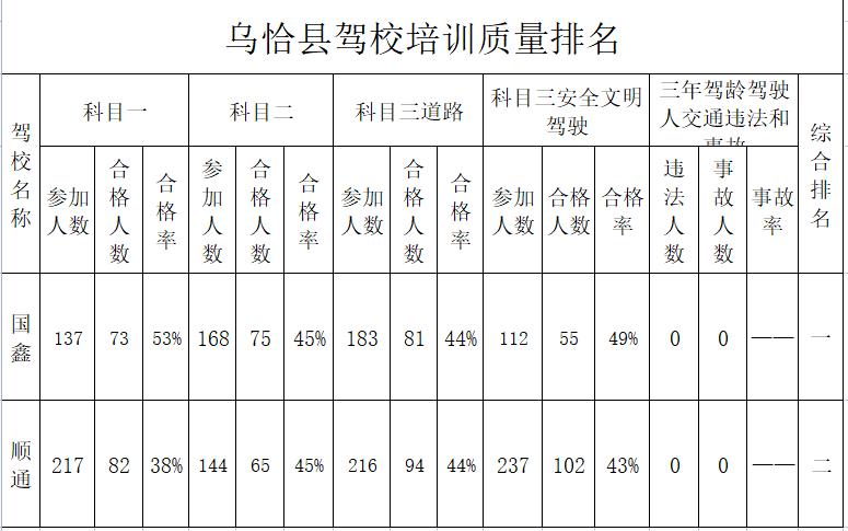 乌恰县驾培机构2021年12月份培训质量排名公示