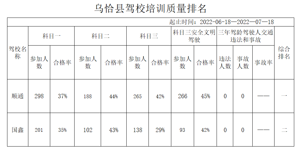 乌恰县驾培机构2022年7月份培训质量排名公示