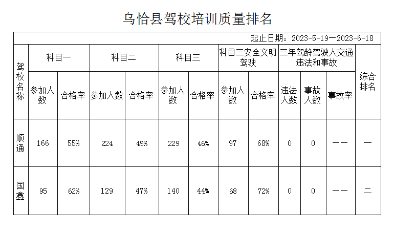 乌恰县驾培机构2023年6月份培训质量排名公示