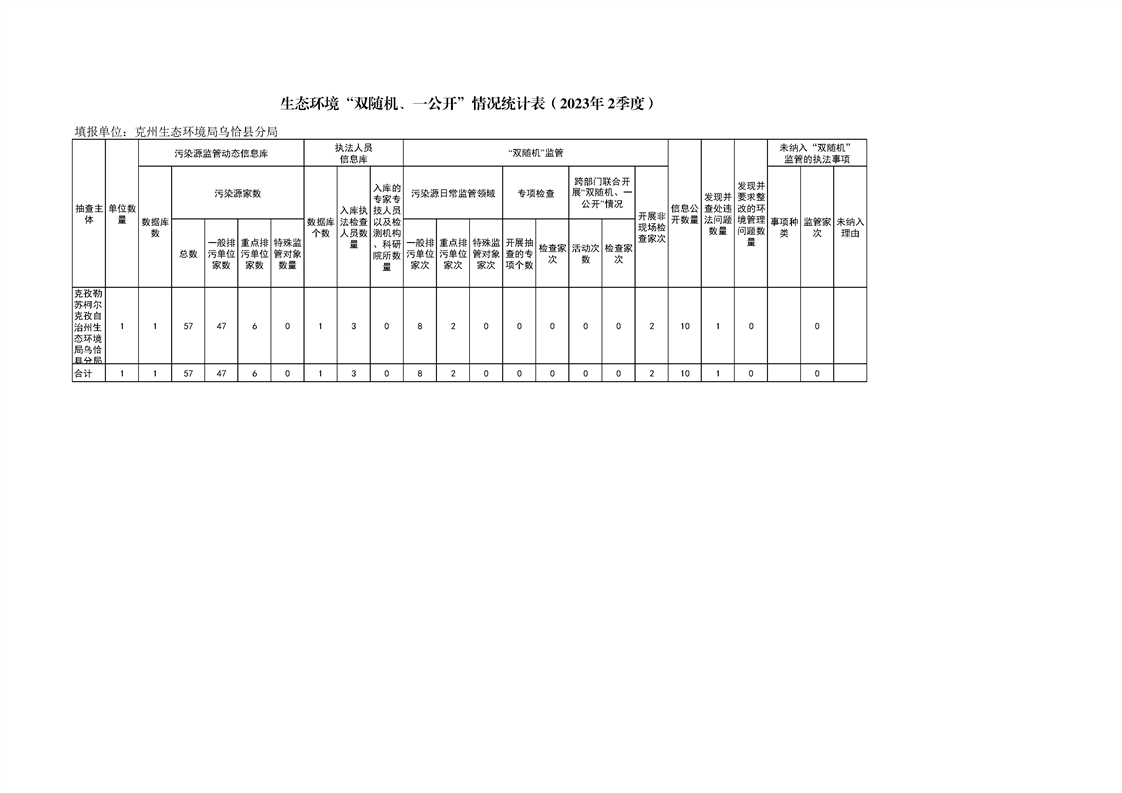 生态环境“双随机、一公开”情况统计表 (2023年 2季度)