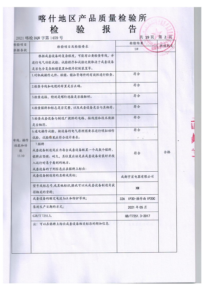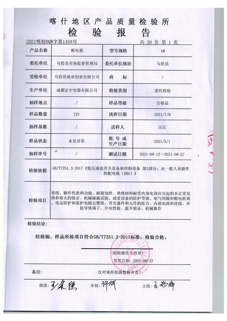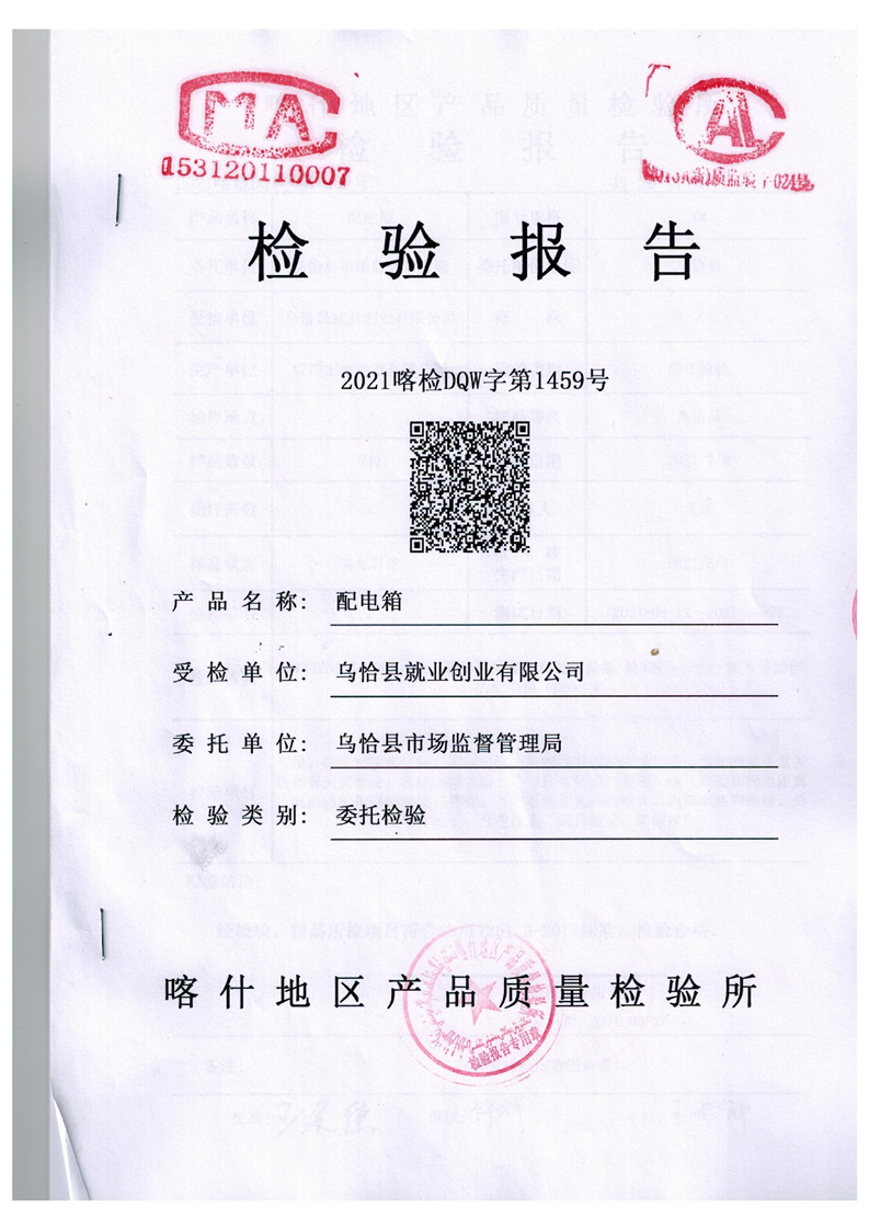 乌恰县市场监督管理局“煤改电”项目配电箱检验报告